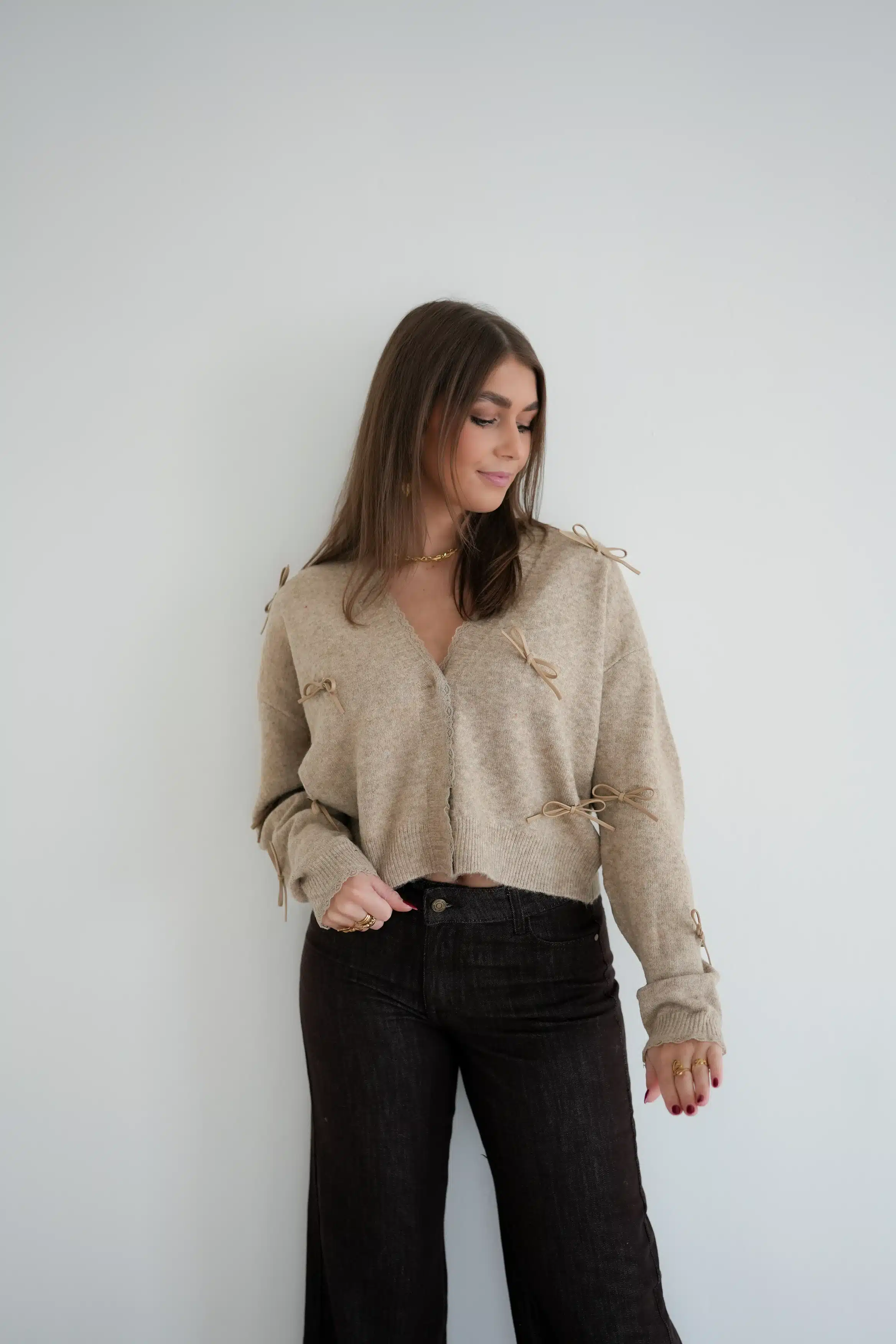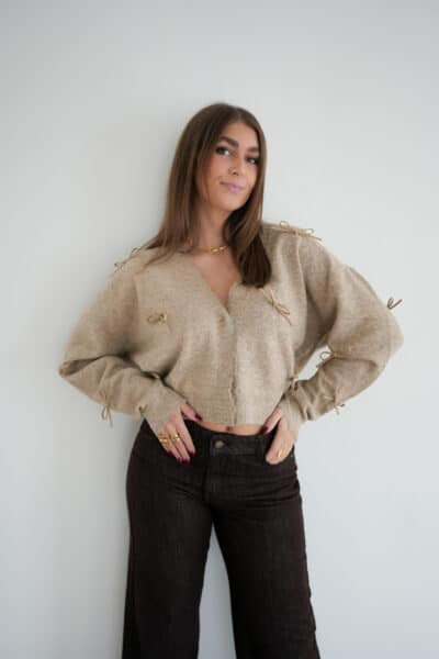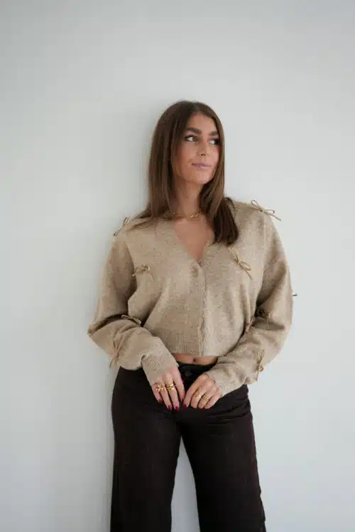 Alia Bow Cardigan Taupe ^