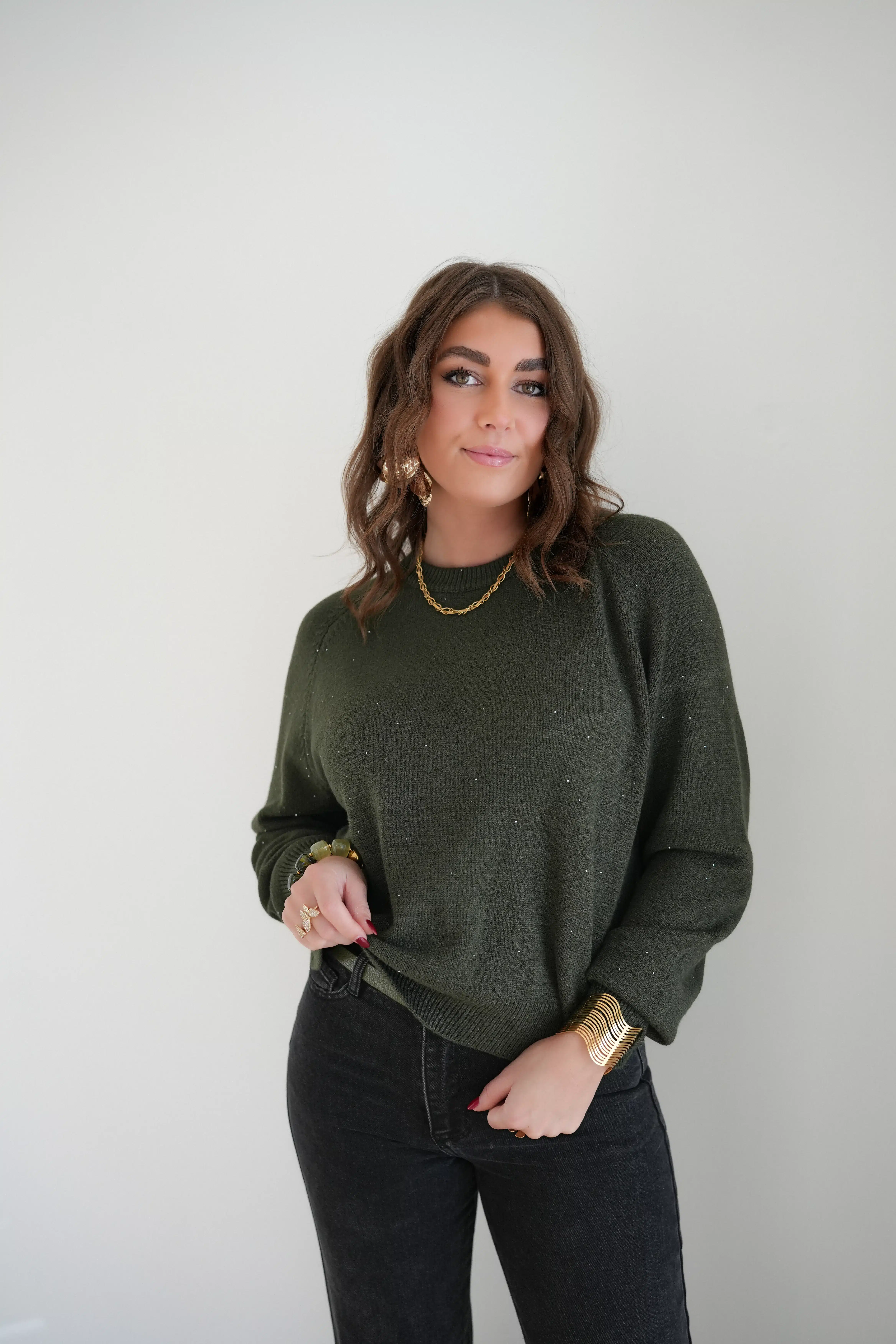 Amanda Sparkle Sweater Khaki