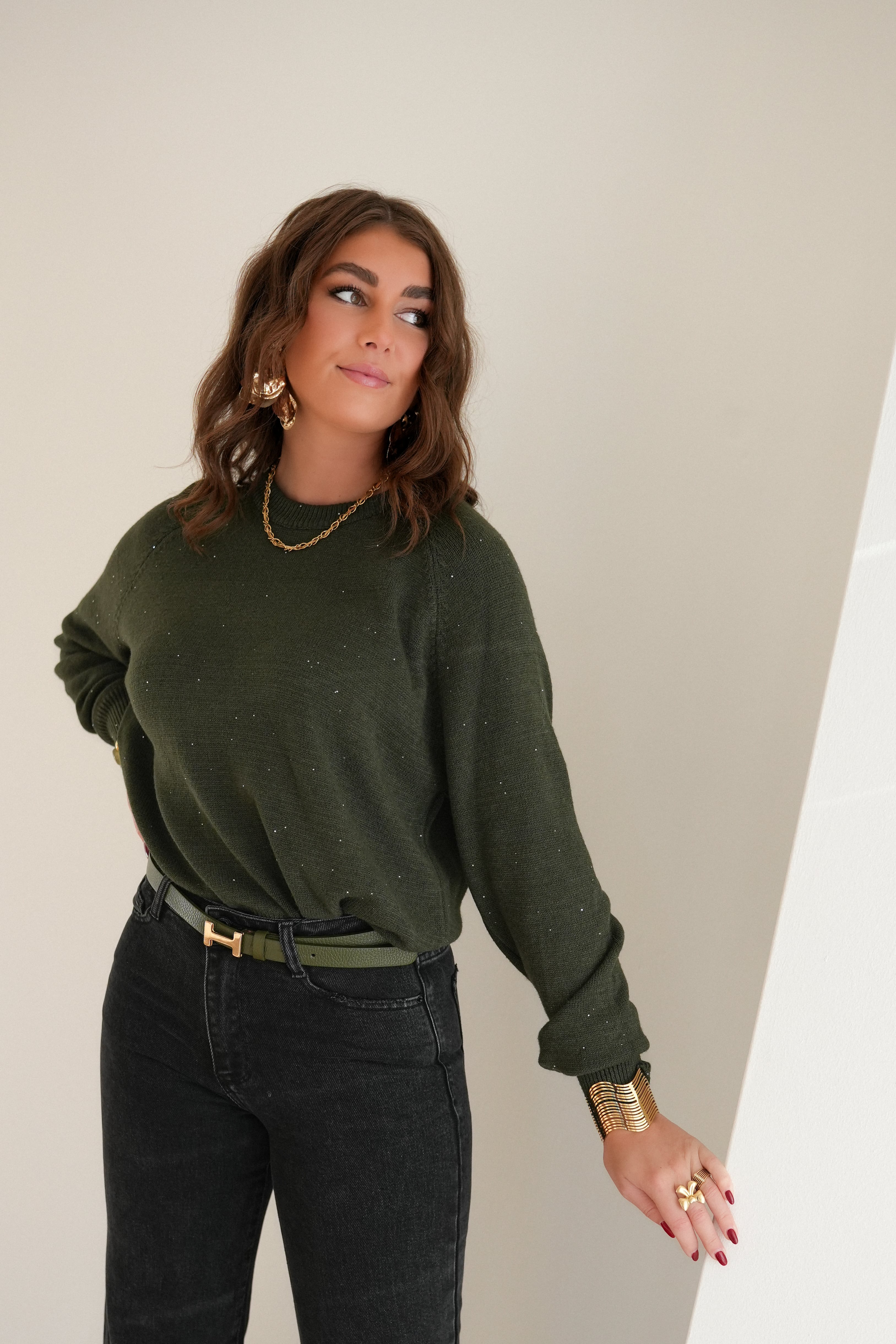 Amanda Sparkle Sweater Khaki