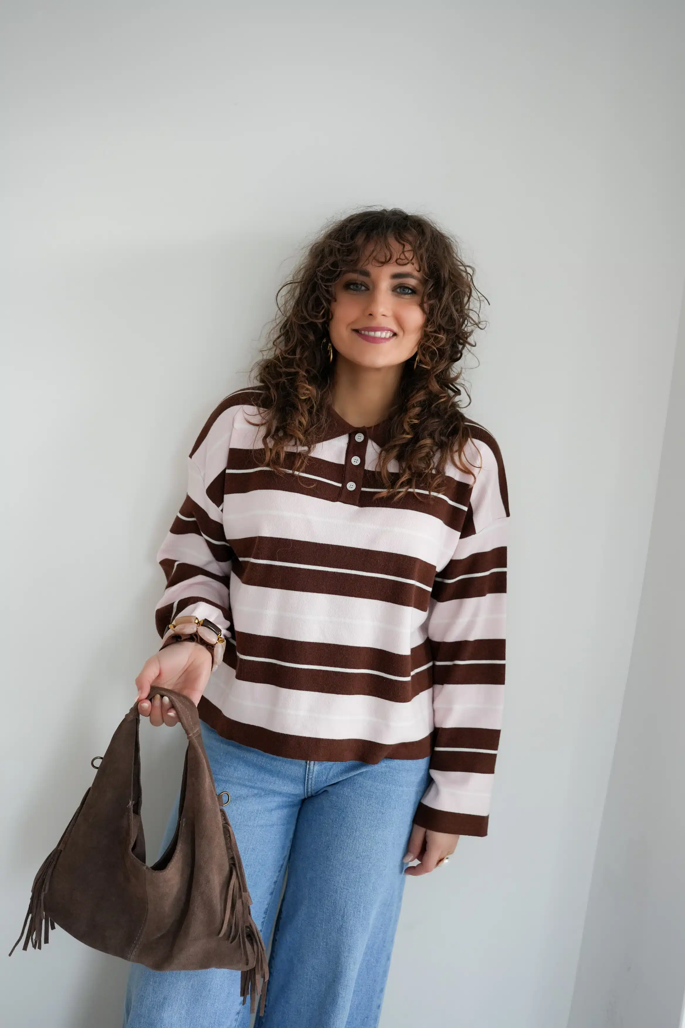Amije Striped Sweater Brown Pink