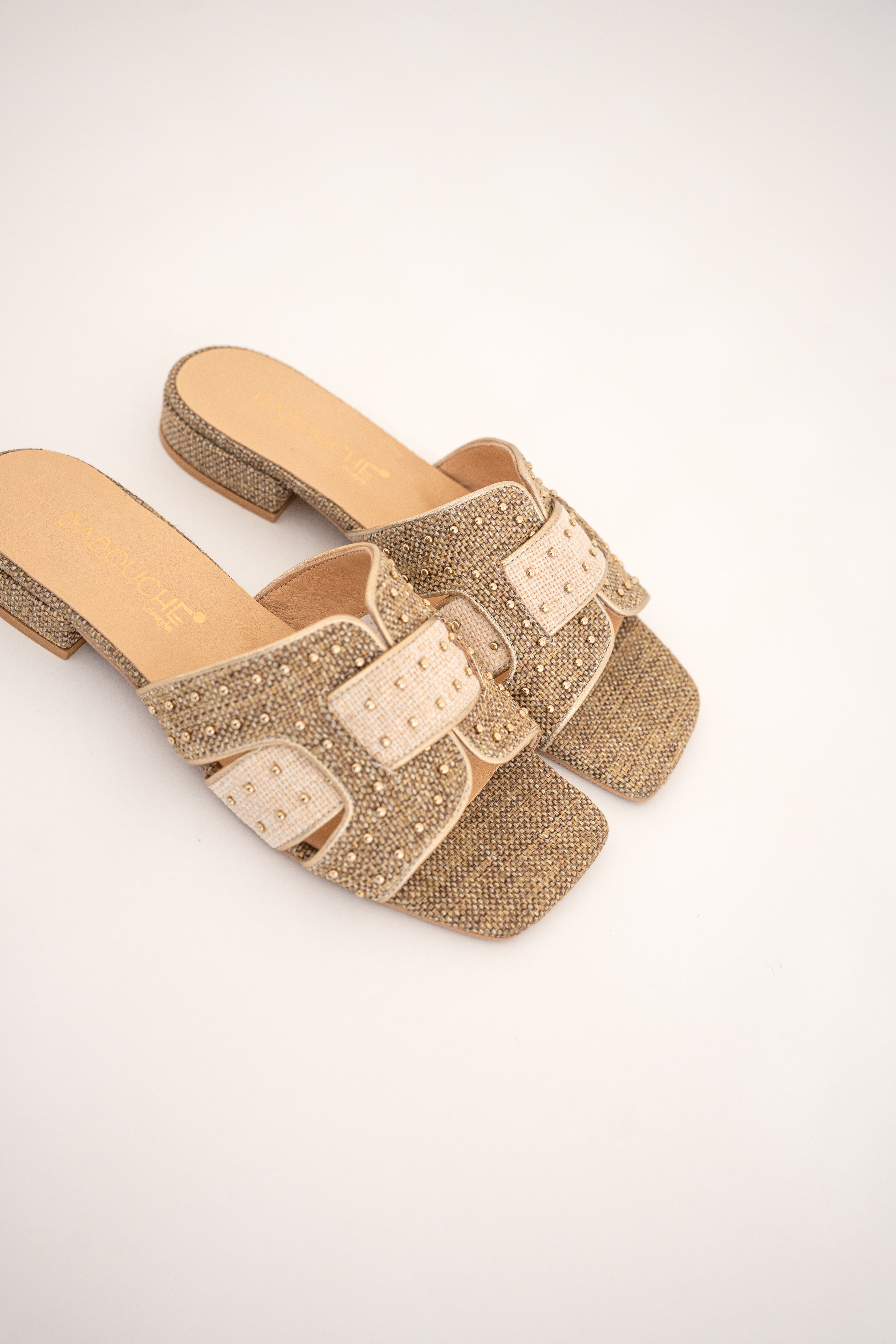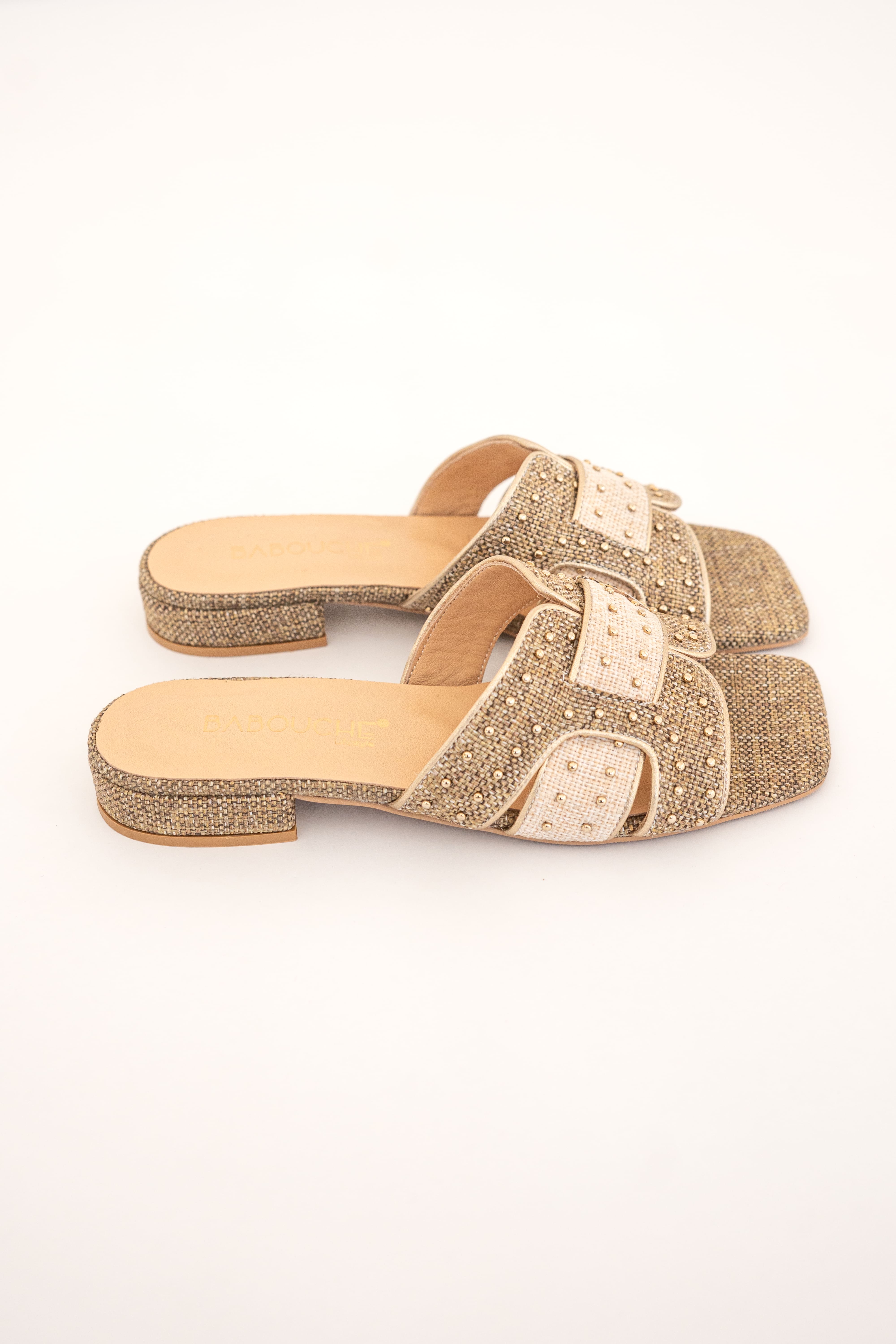 Babouche Sandal G-Joni-162 Taupe Beige Gold