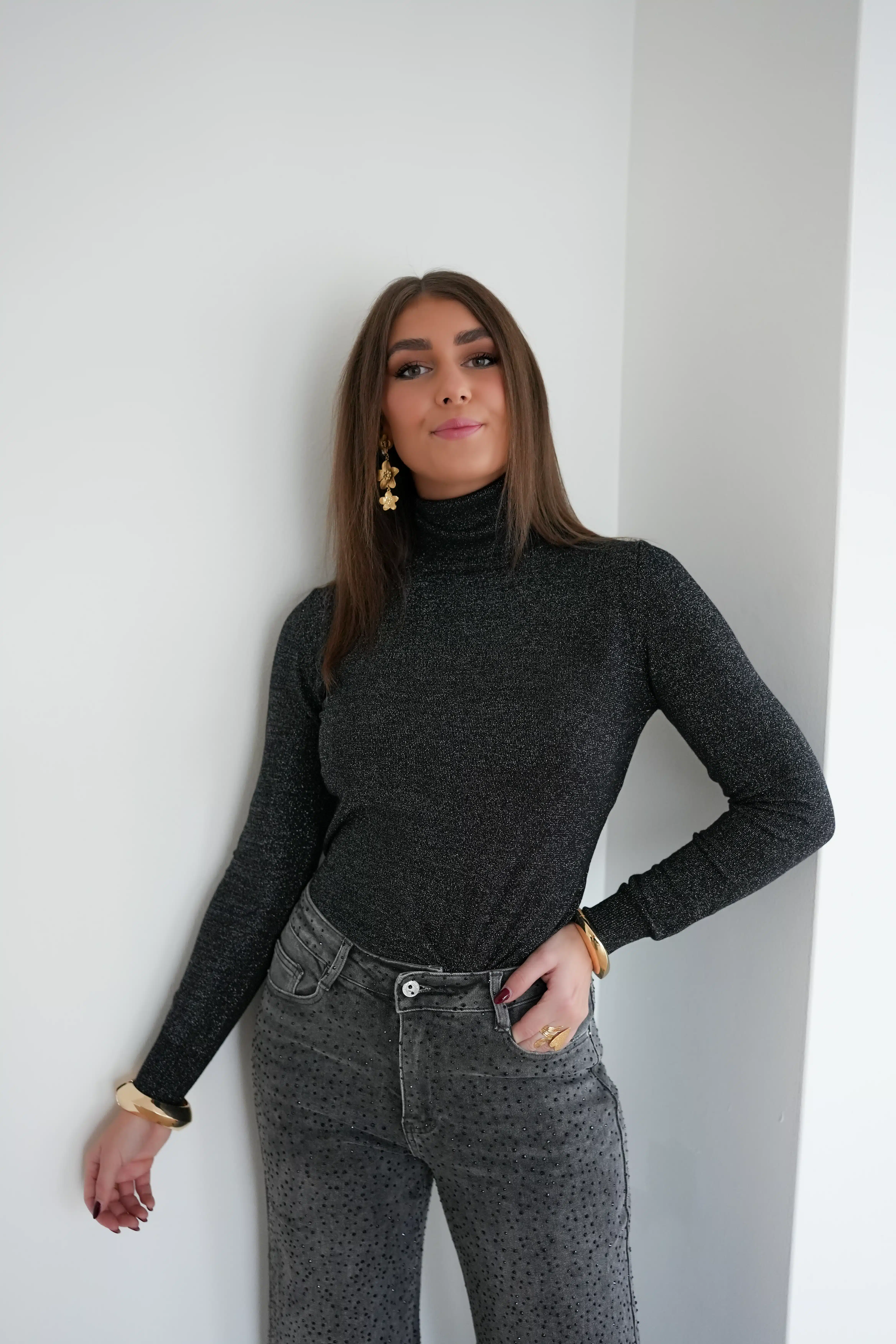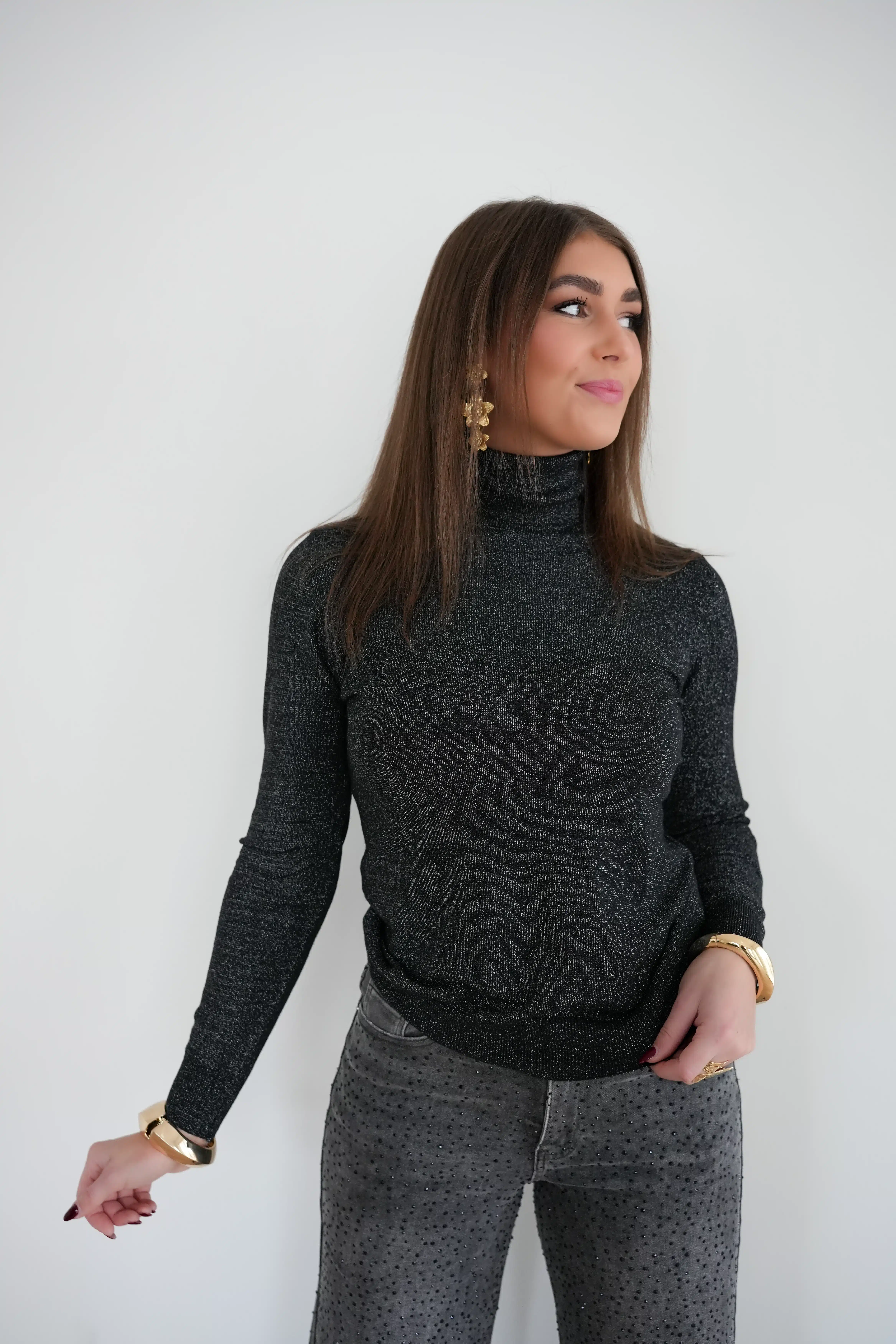 Cece Lurex Sweater Black