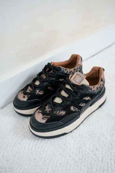 De Walton sneaker met leopard stof is nieuw bij DWRS. Een sneaker met een hoge / dikke zool als dit model is een must in je schoenenkast. Deze sneaker voor dames is aan de buitenzijde van leer en leopard stof en de binnenzijde is volledig van leer. Met de dikke veters door de schoen val je zeker op! Doe jij mee met de trend?