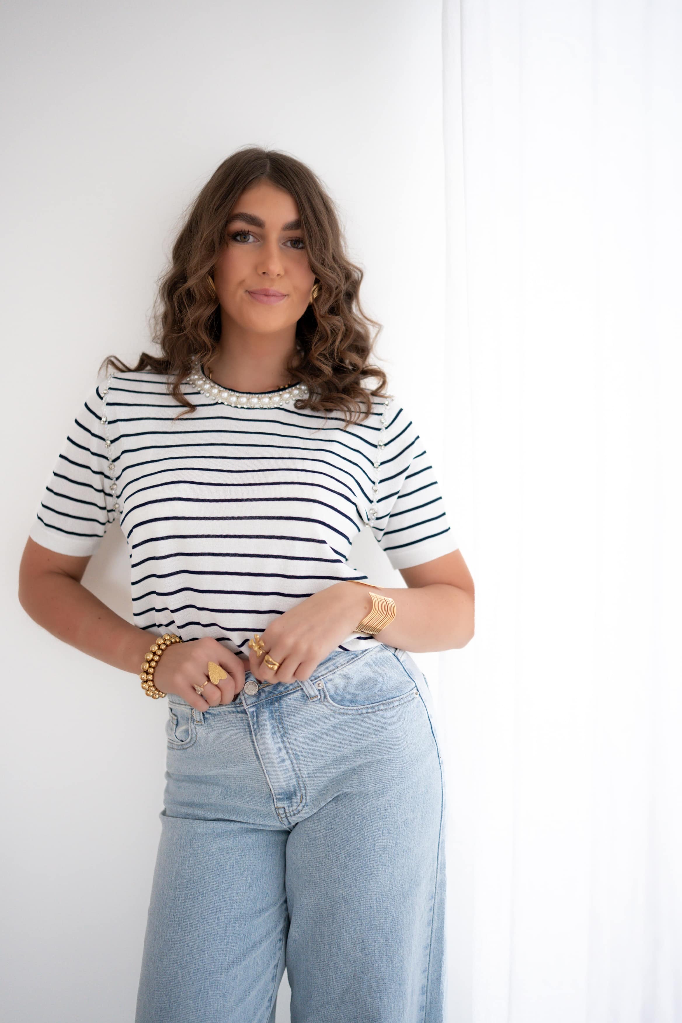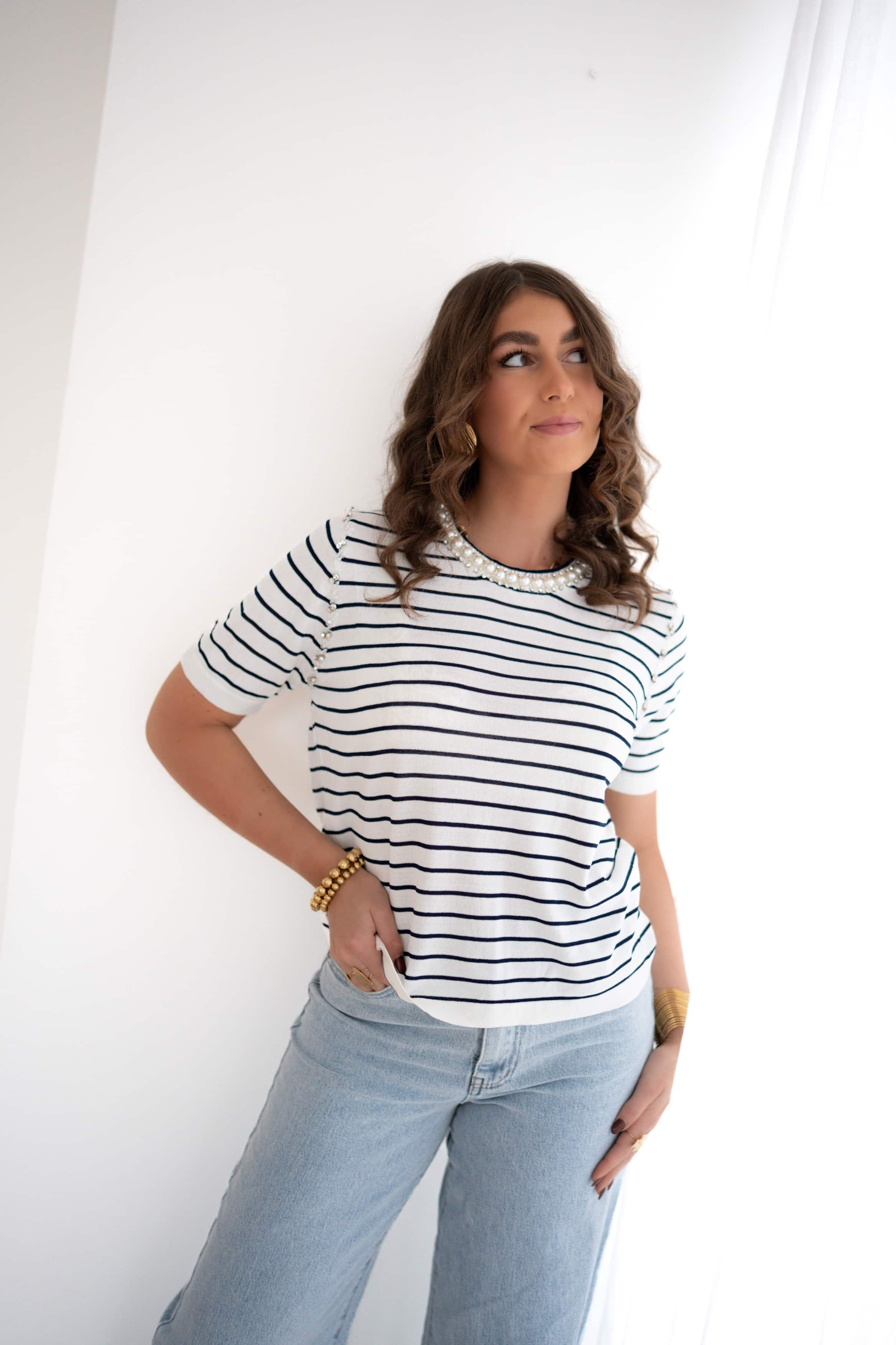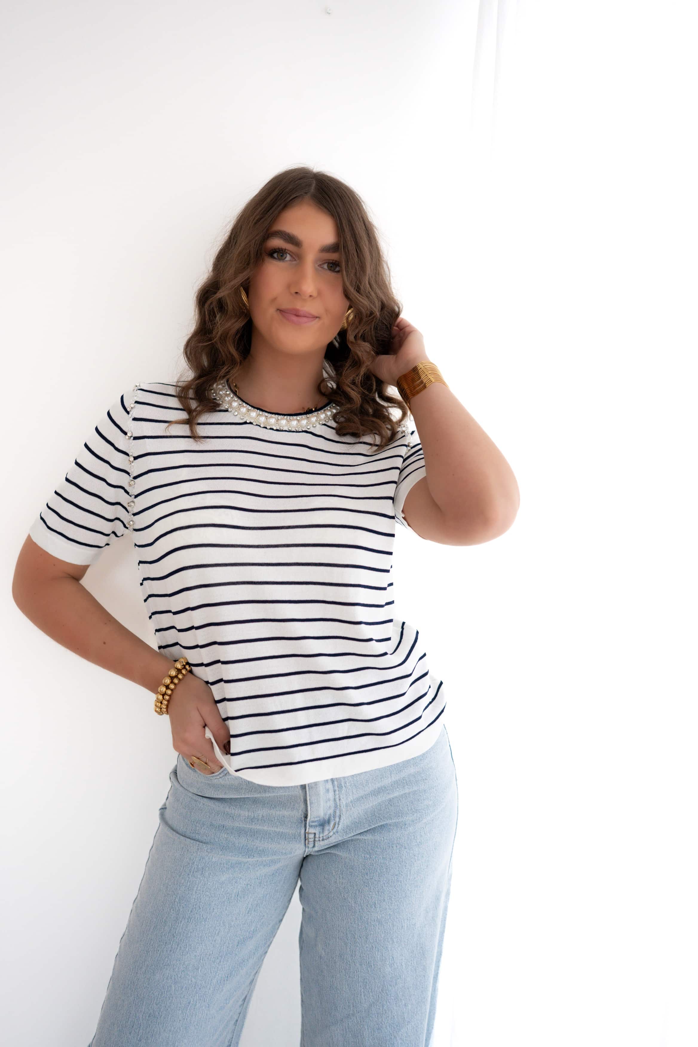 Emma Striped Shirt Shiny Pearl |