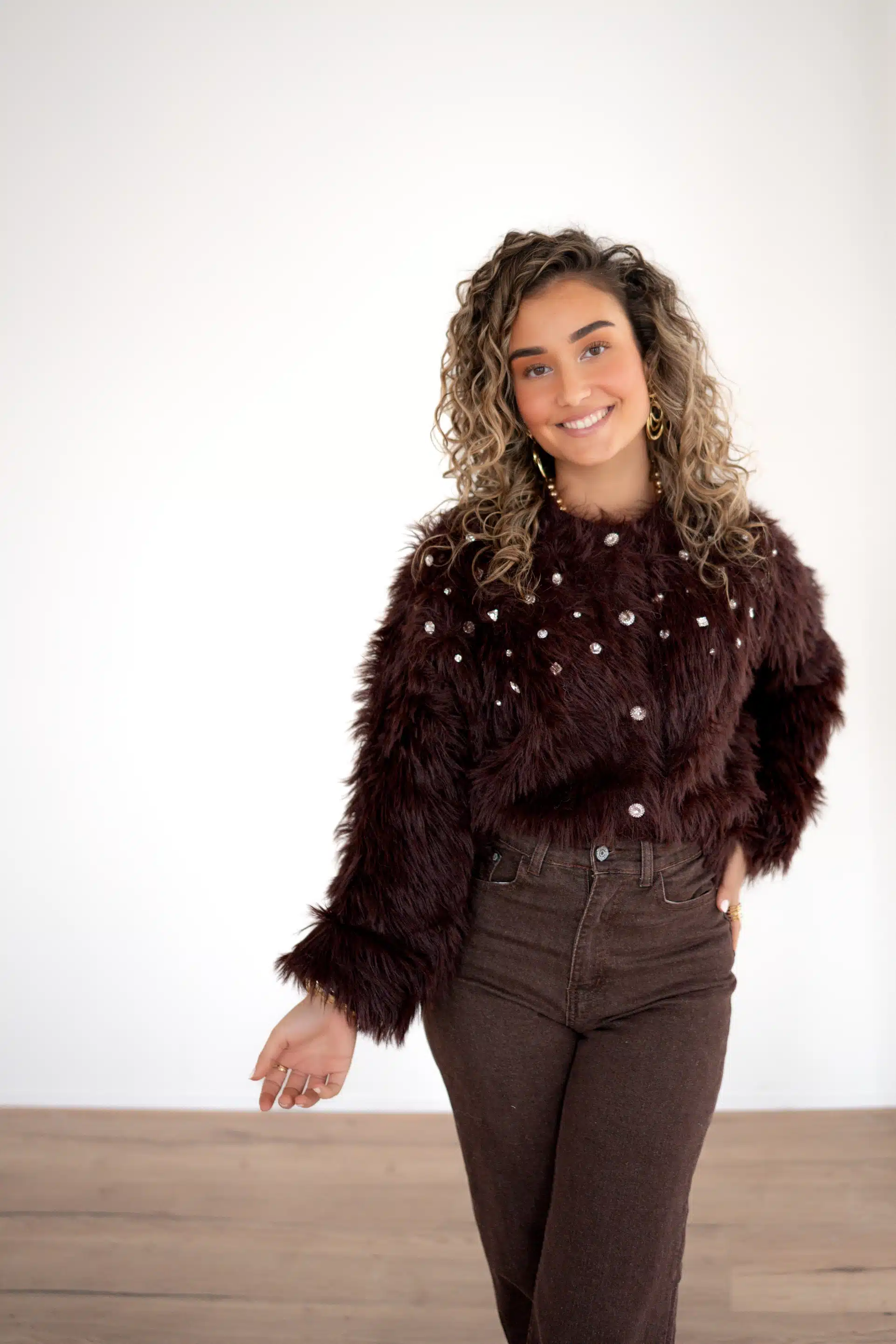 Fluffy Cardigan Stones Brown –