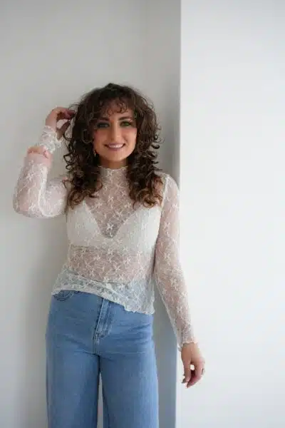 Jenna Mesh Top Sparkle OffWhite .