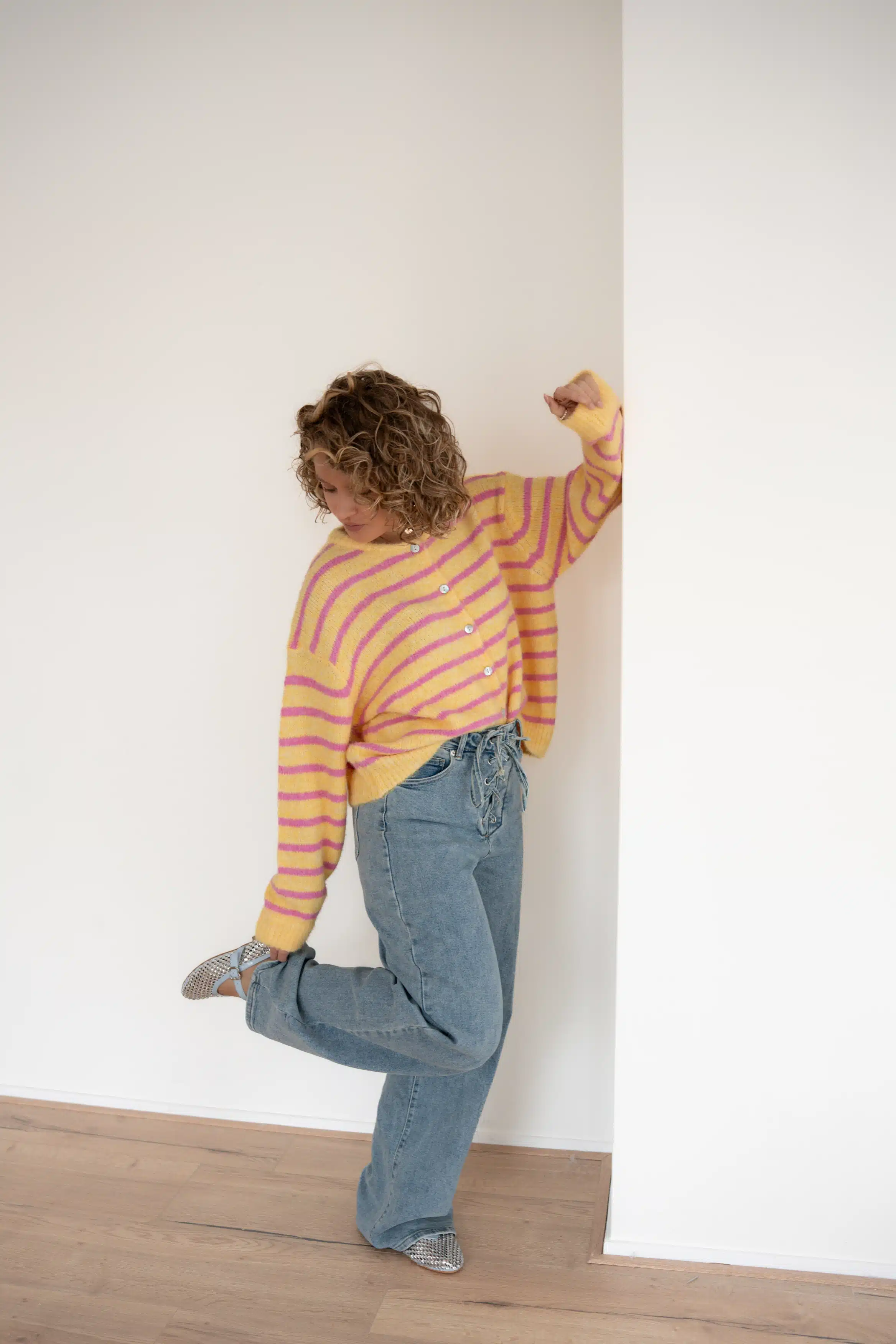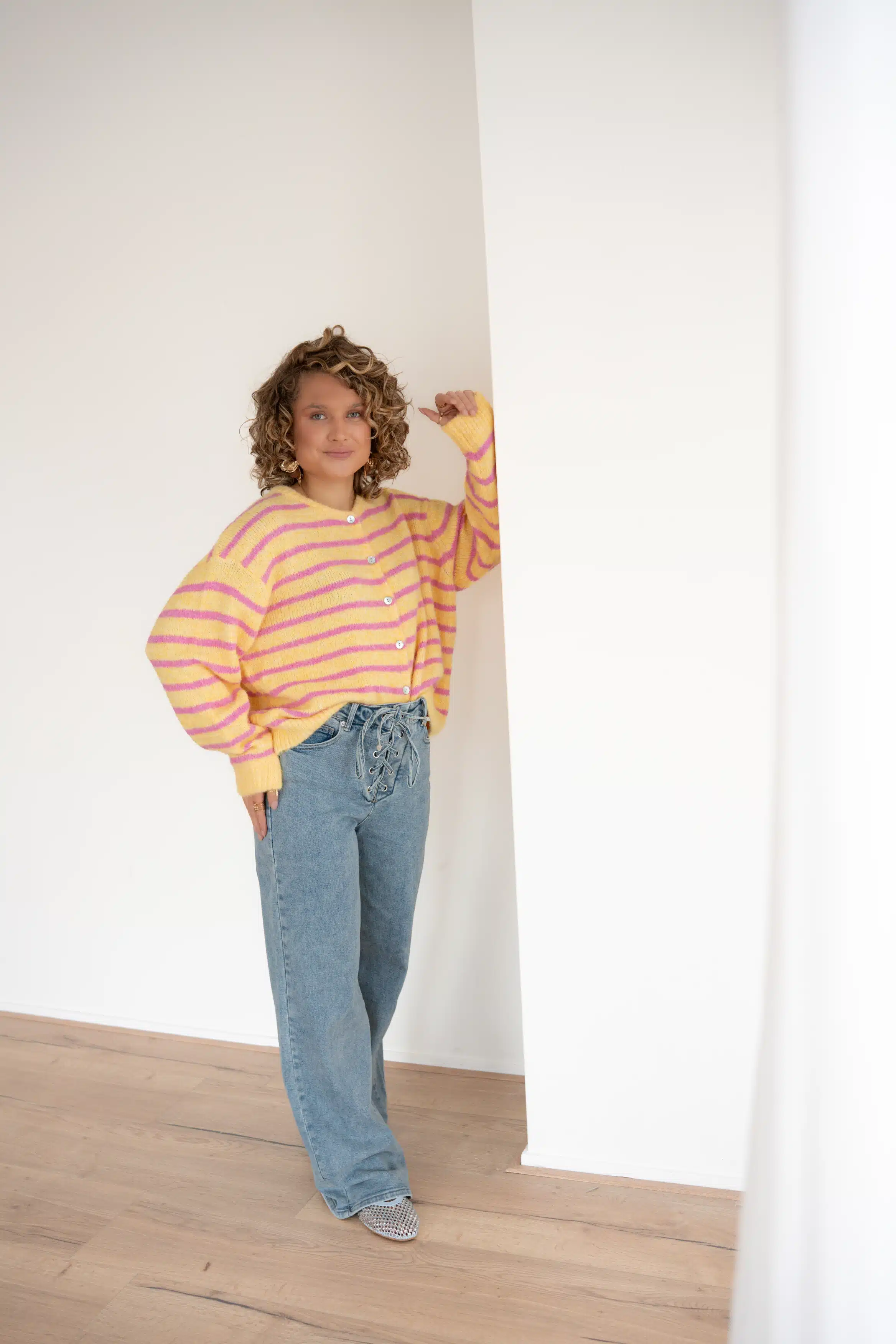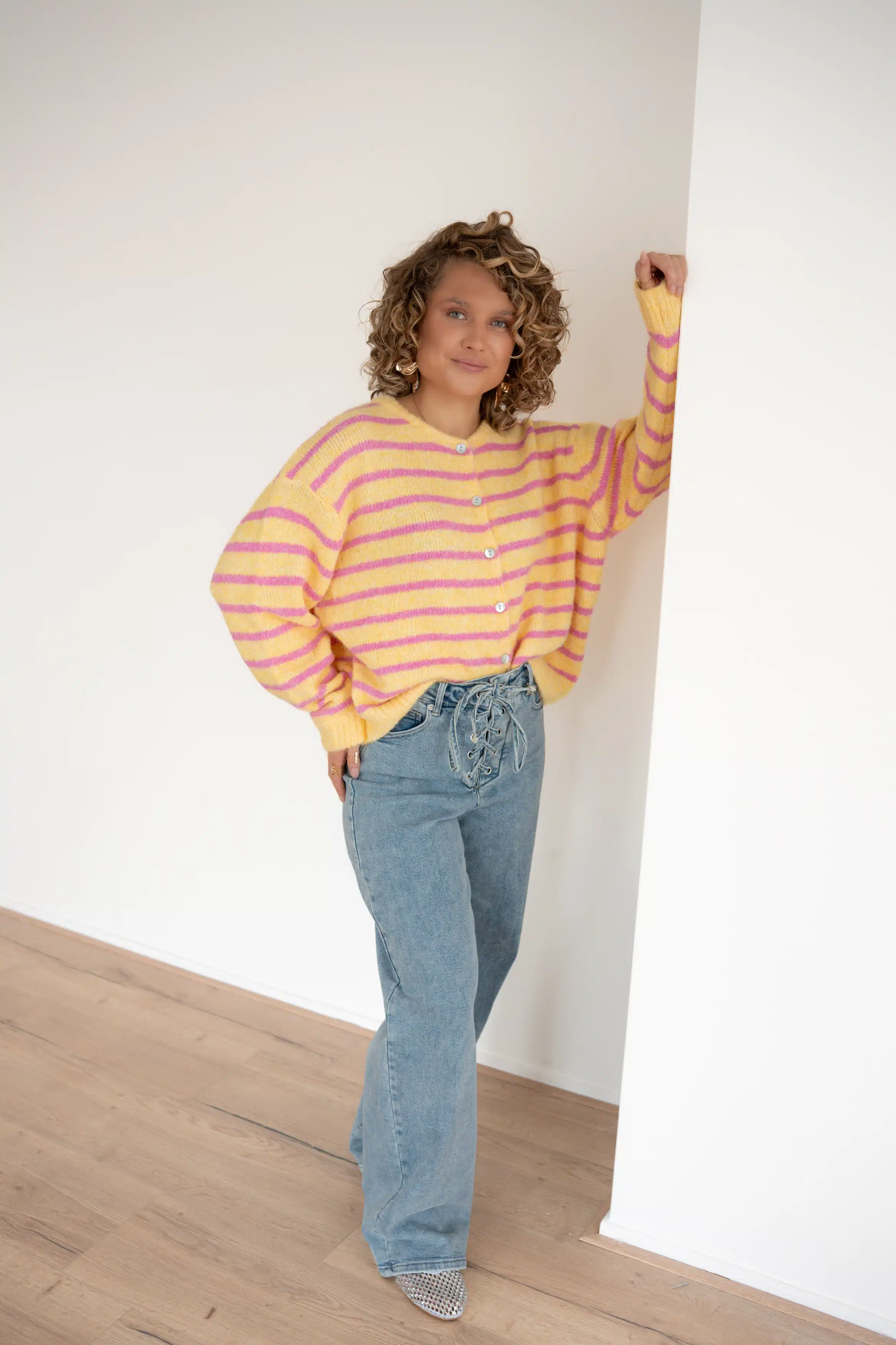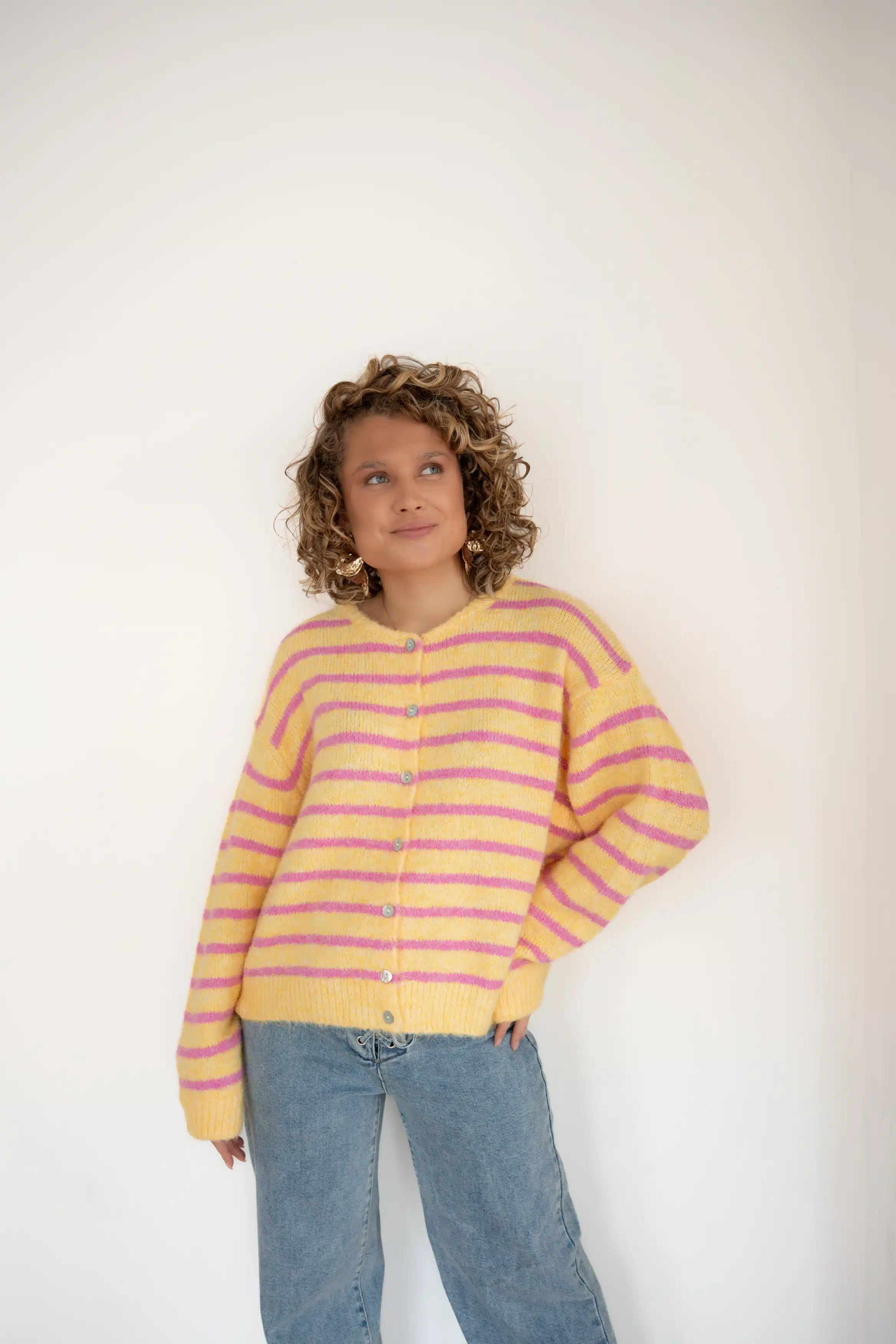 Jenthe Striped Cardigan Yellow Pink #