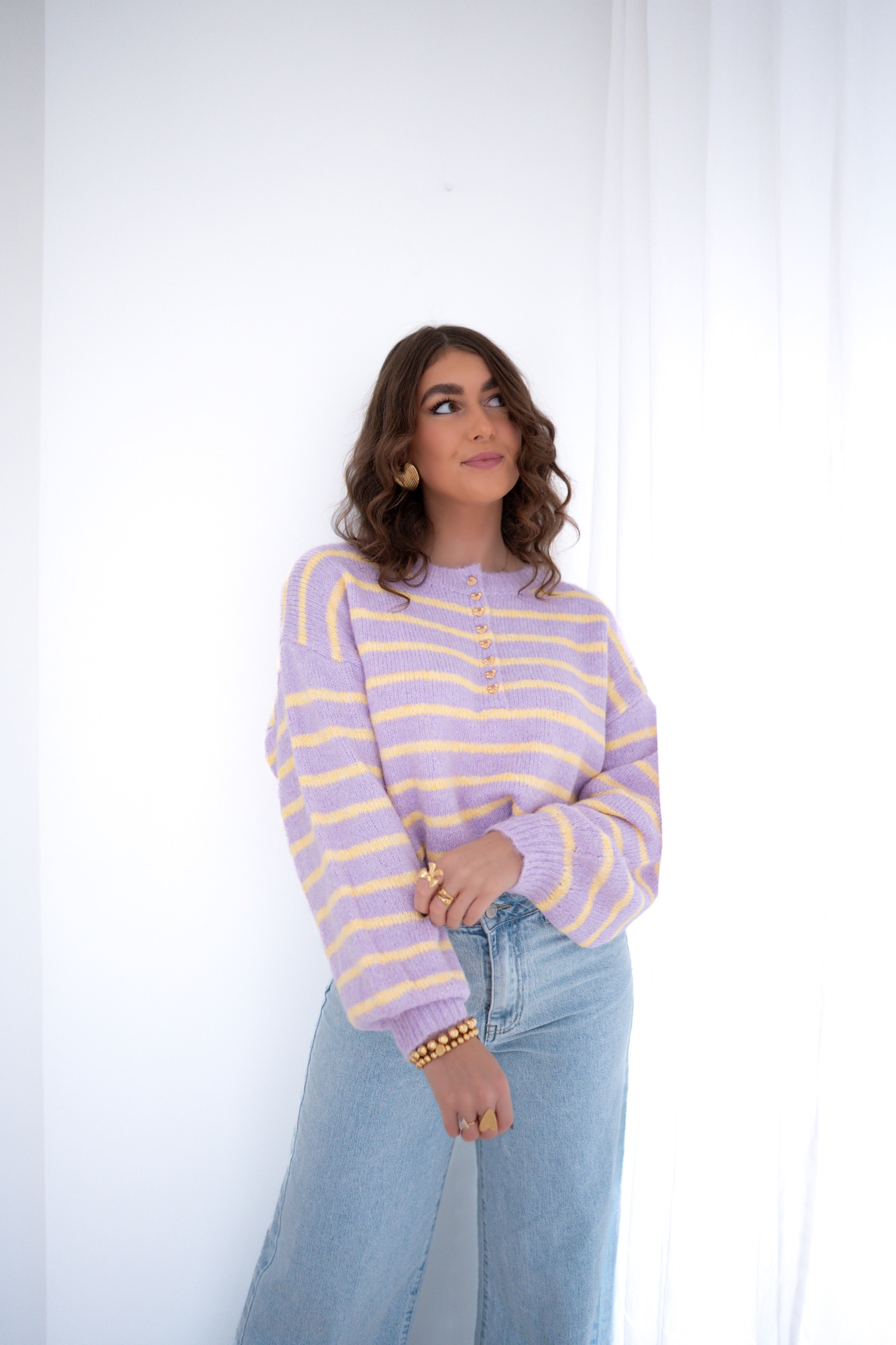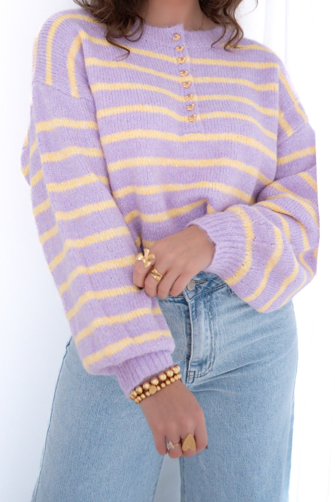 Julia Sweater Heart Detail Lila Yellow .
