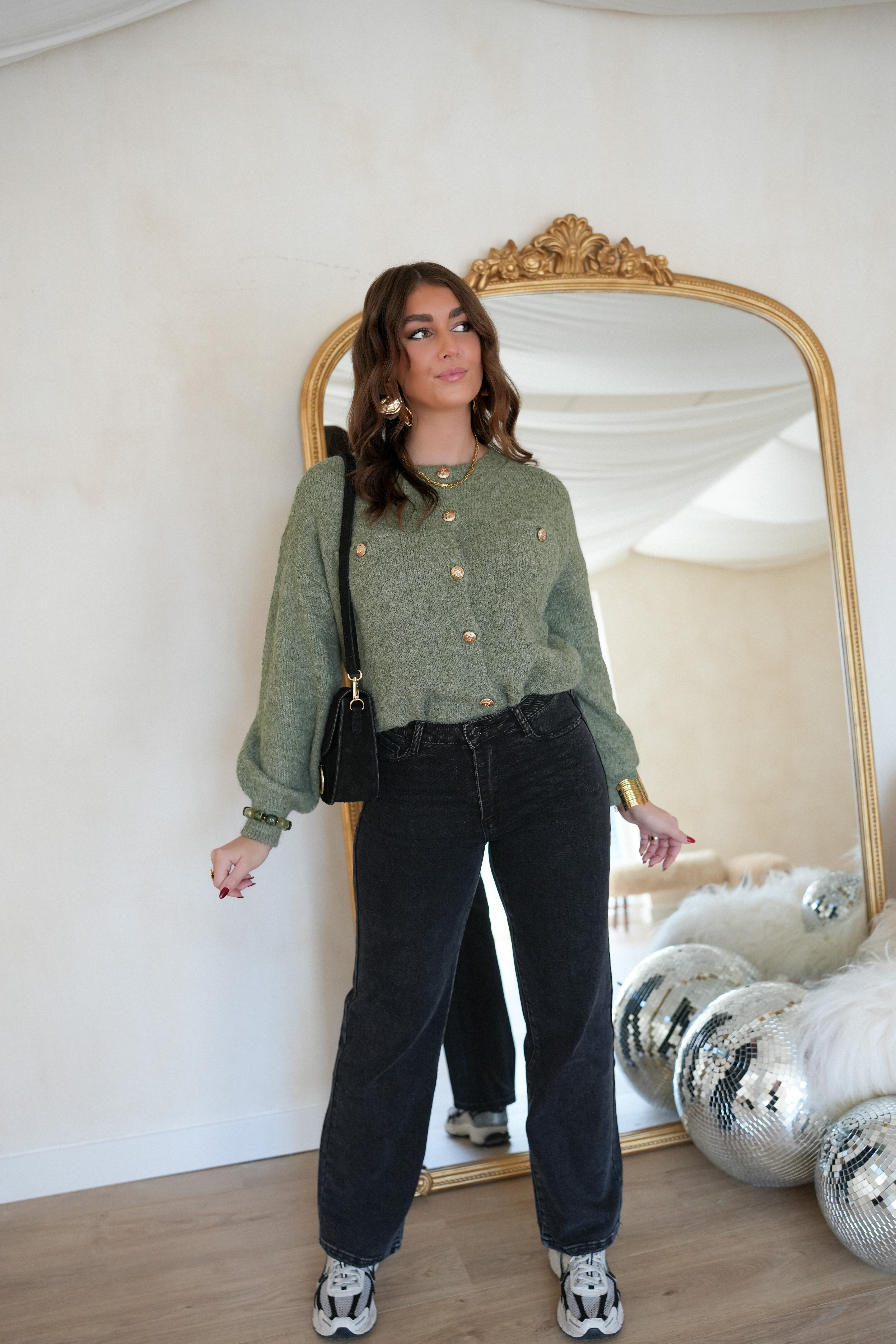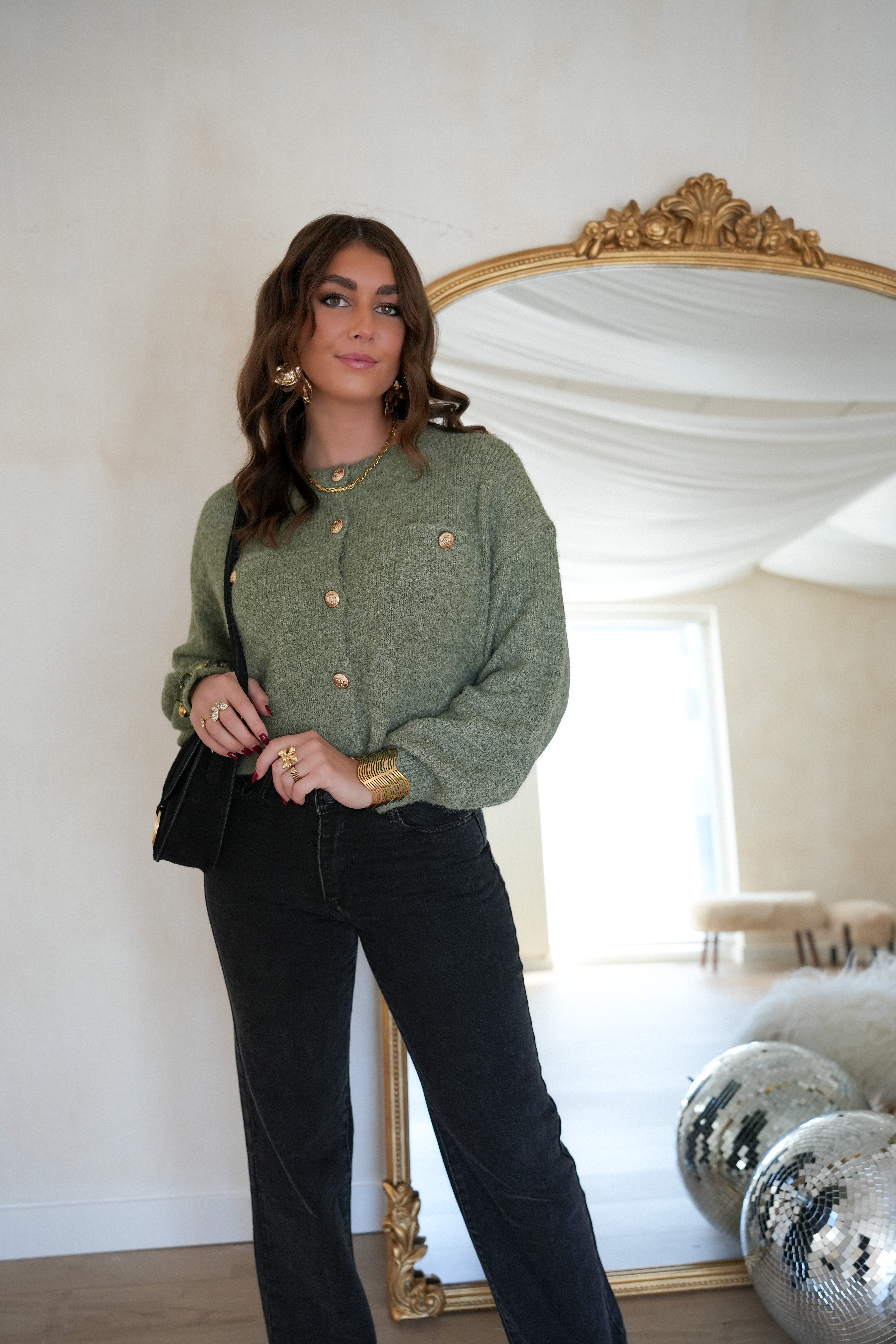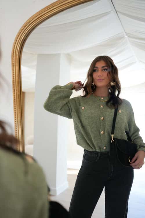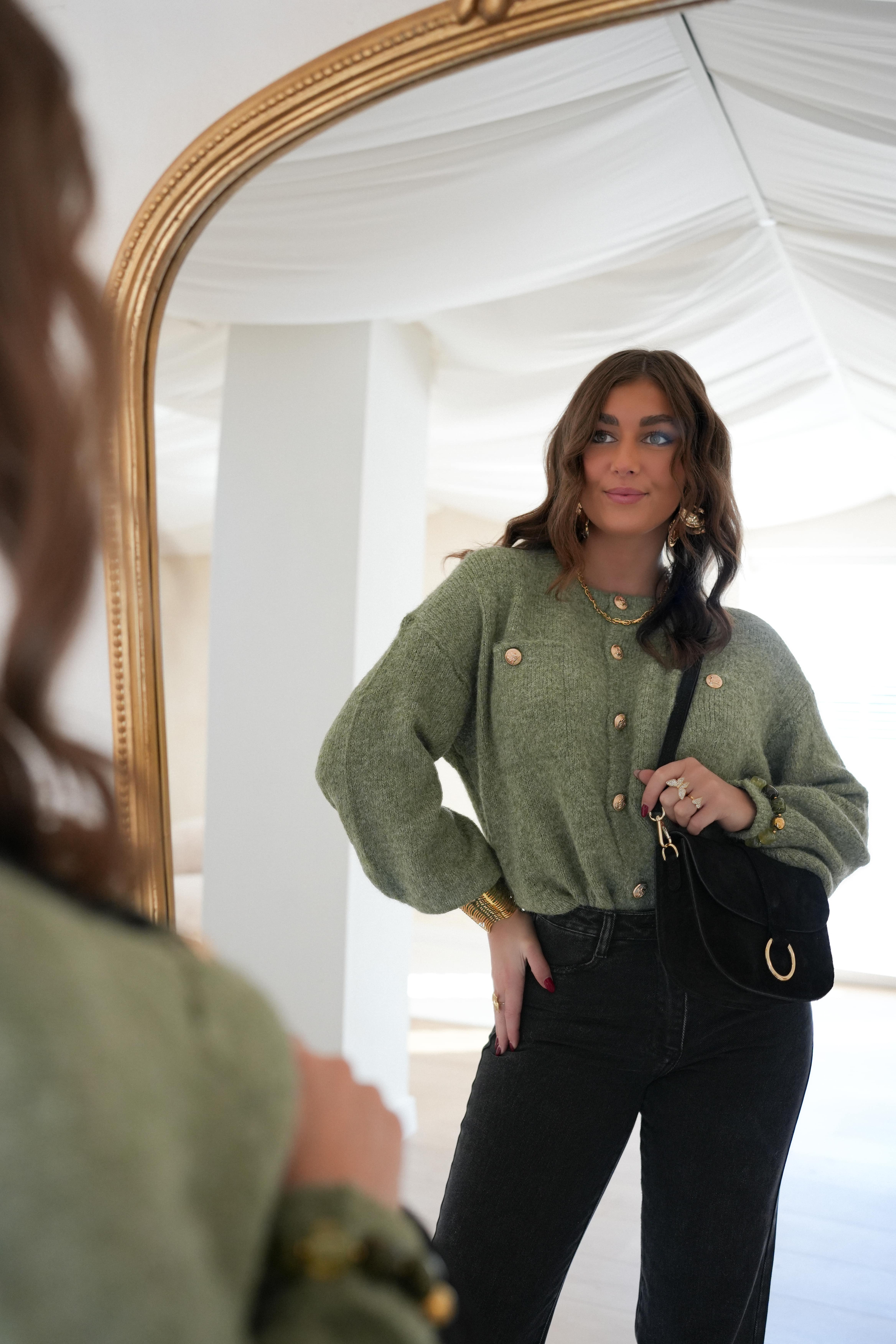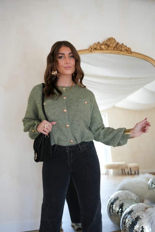 Juul Cardigan Gold Detail Khaki .