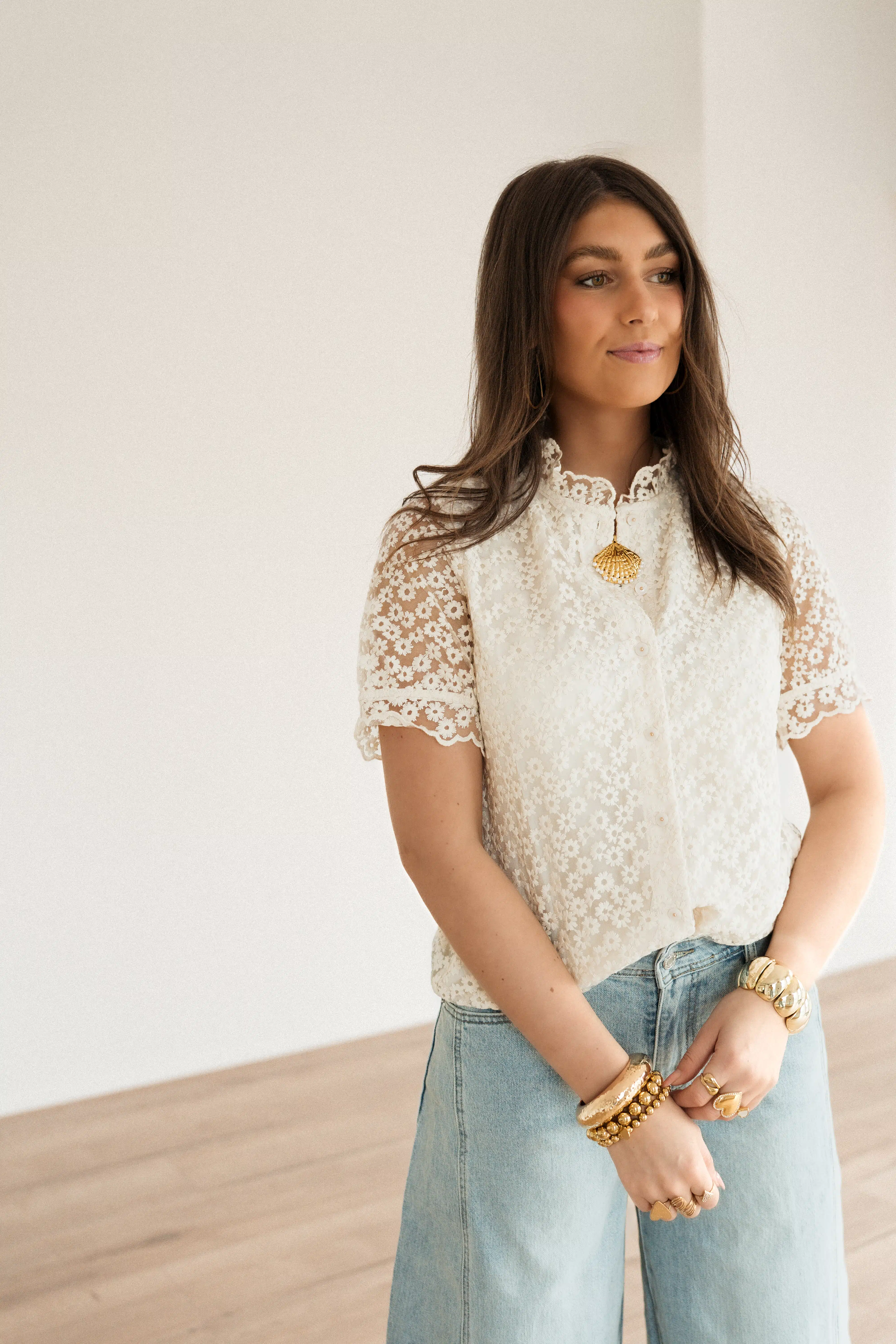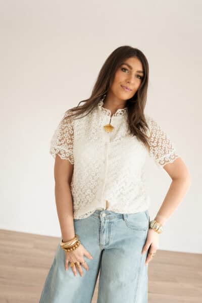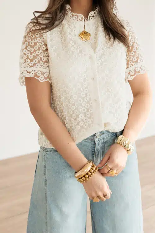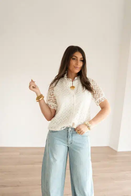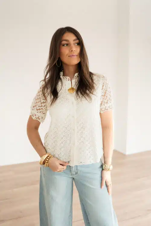 Lily Blouse Flower Beige .