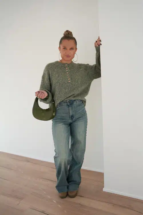 - model draagt haar eigen maat S/36 en is 1.63m lang