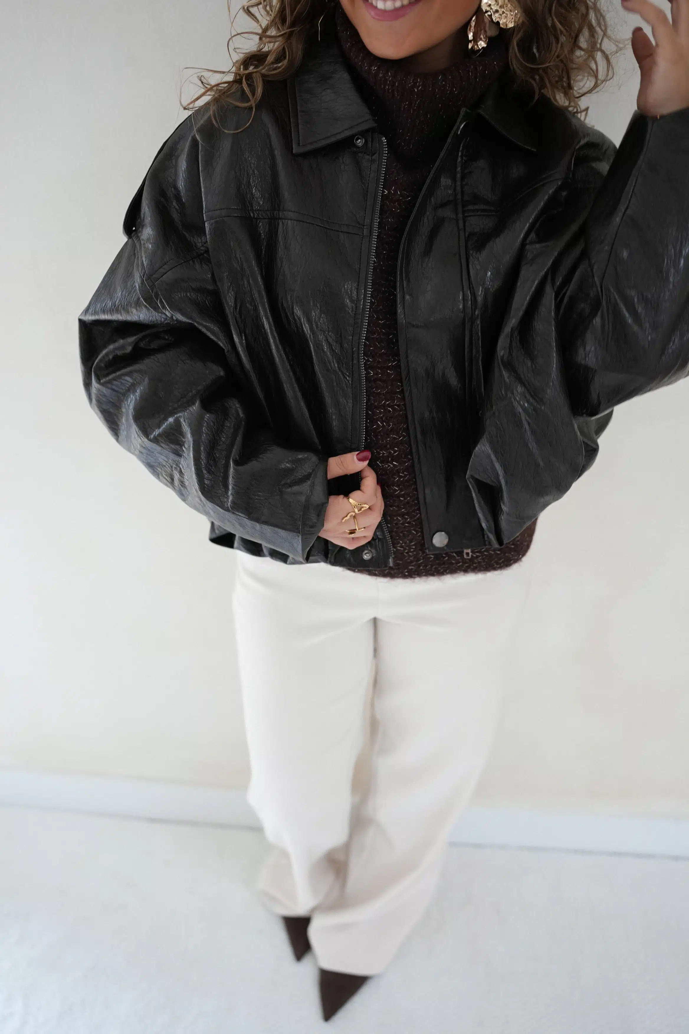 Lizz Leatherlook Jacket Dark Brown –