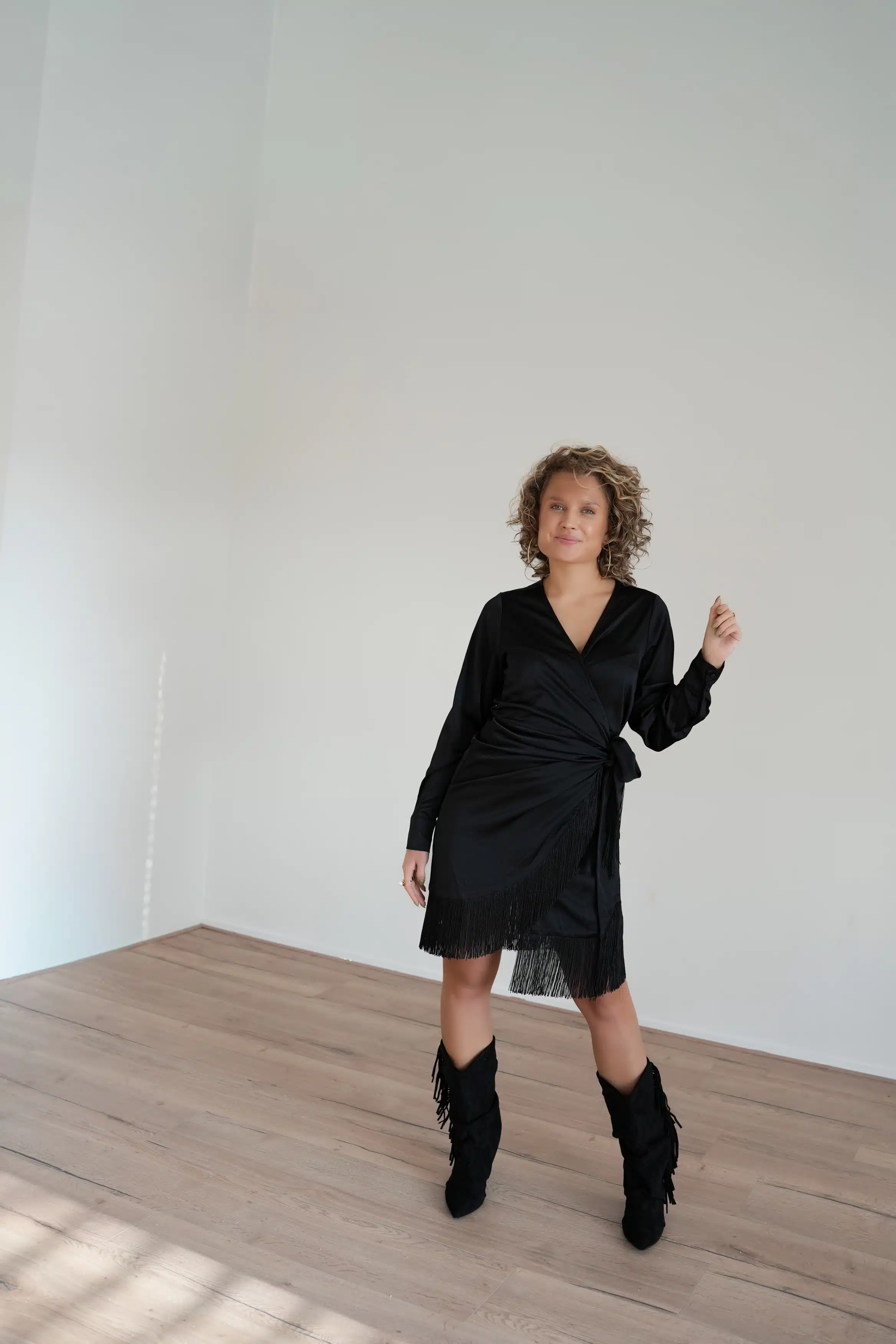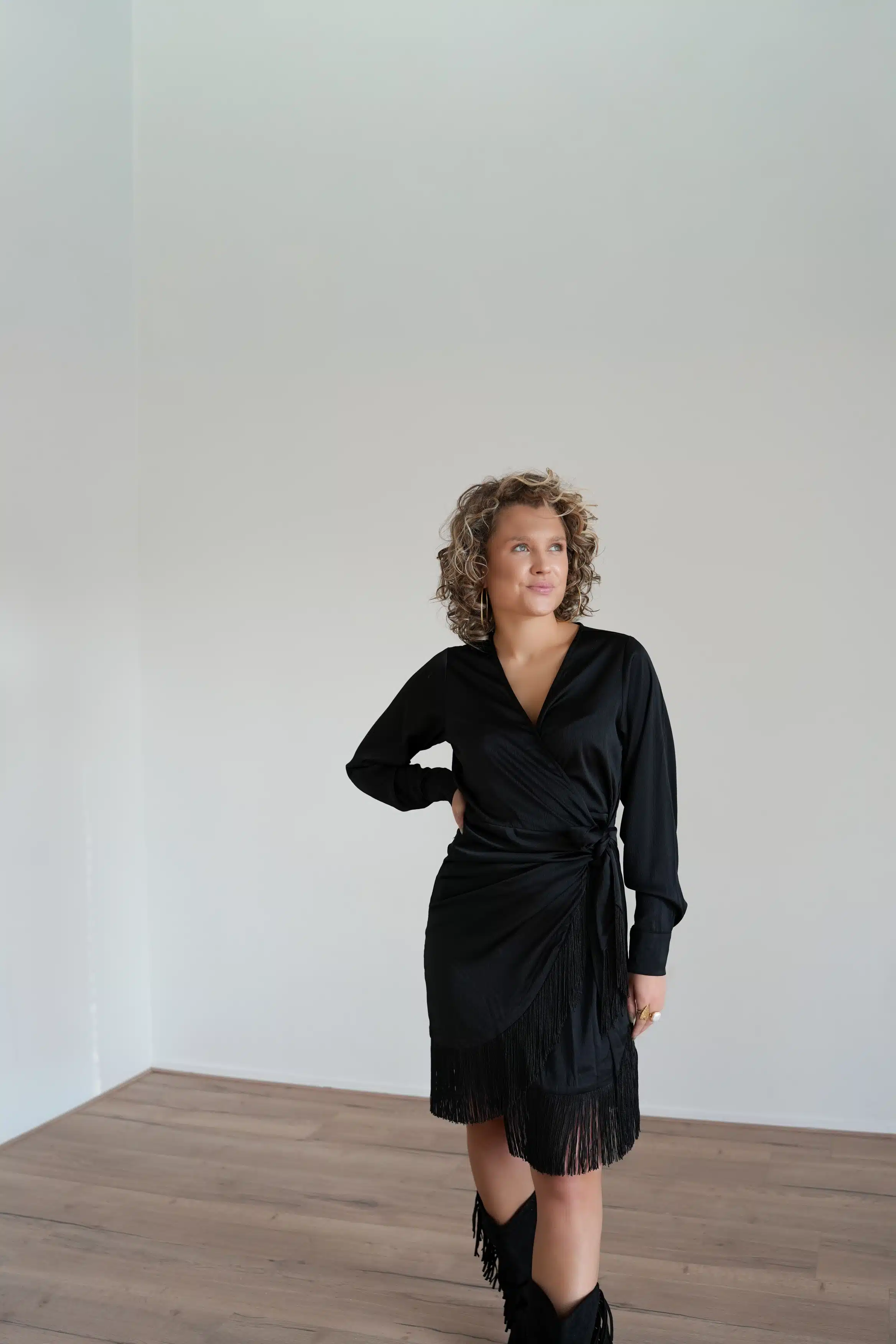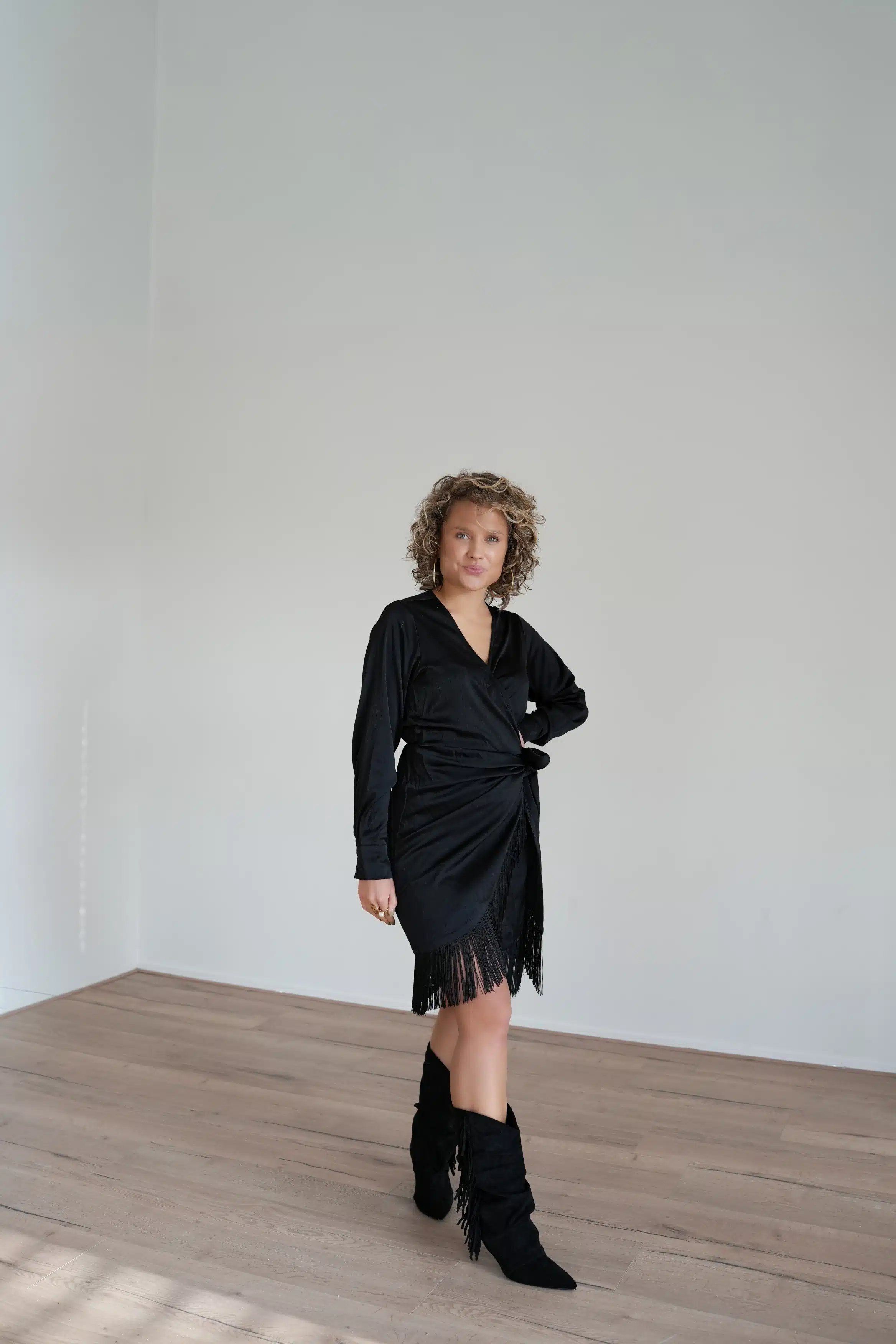 - model draagt S en is 1.63m lang