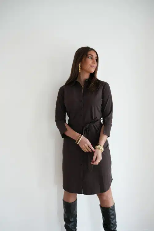 Het model draagt een M, haar eigen maat en is 1.72m lang.