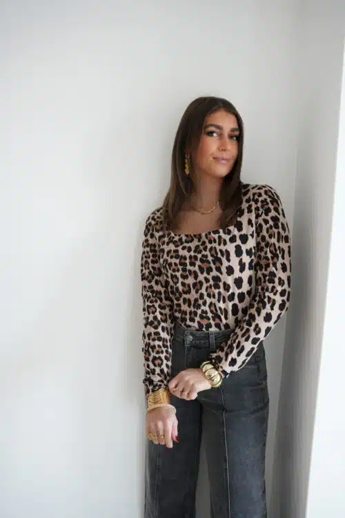 Het model draagt een M, haar eigen maat en is 1.72m lang.