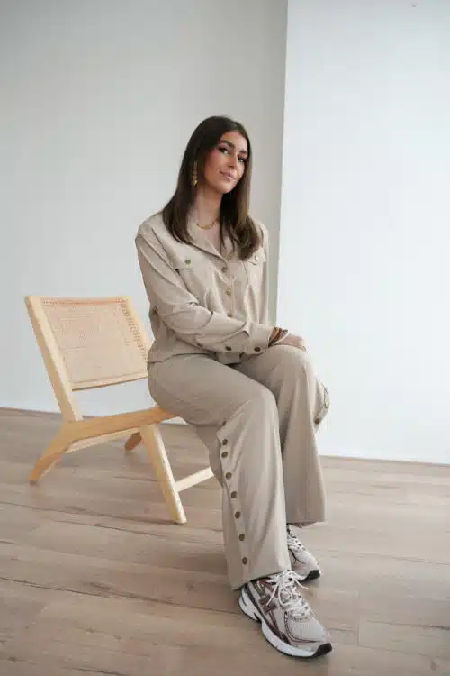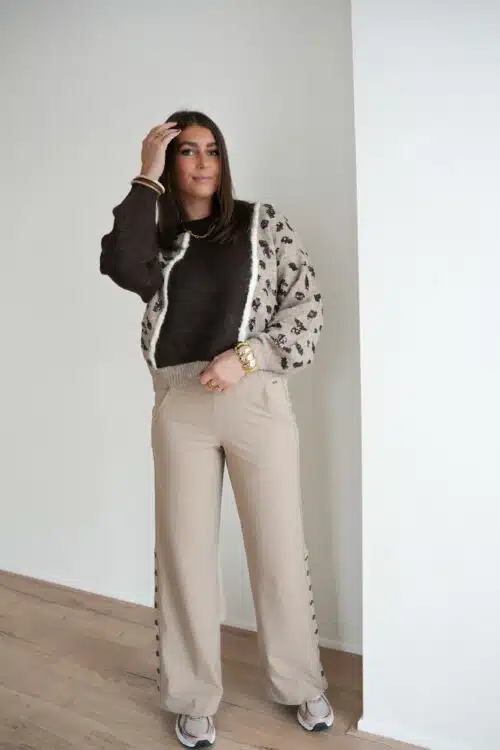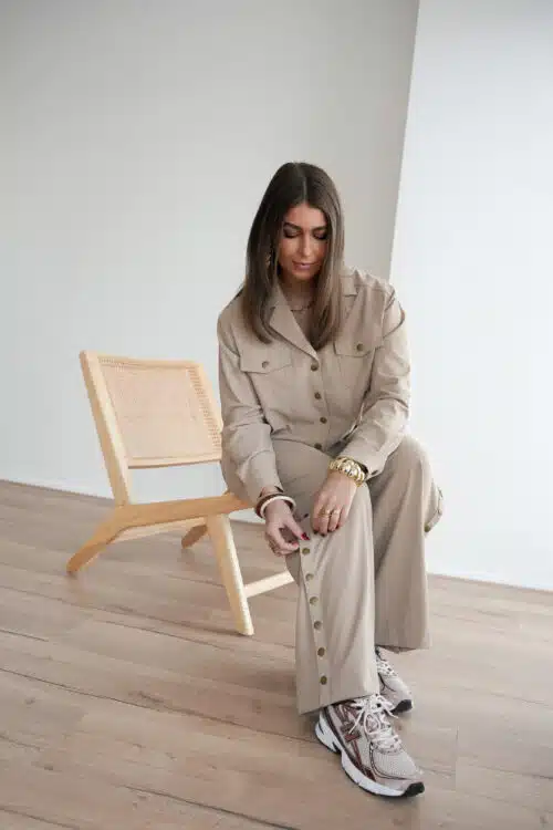 Het model draagt een M, haar eigen maat en is 1.72m lang.