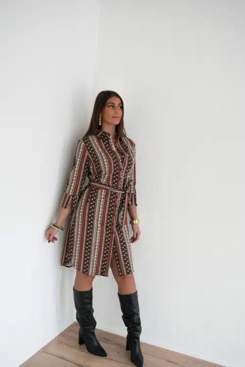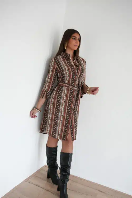Het model draagt een M, haar eigen maat en is 1.72m lang.