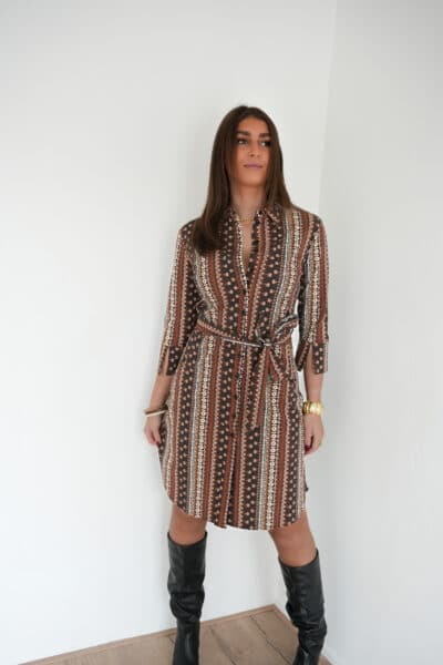 Het model draagt een M, haar eigen maat en is 1.72m lang.