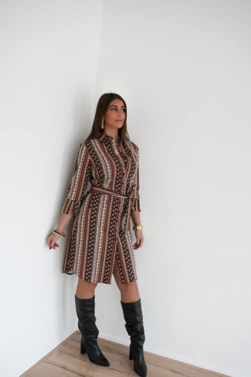 Het model draagt een M, haar eigen maat en is 1.72m lang.