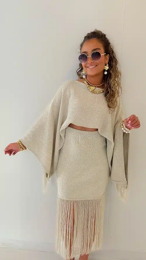 Moost & The Muse Rosy Fringe Skirt Light Beige