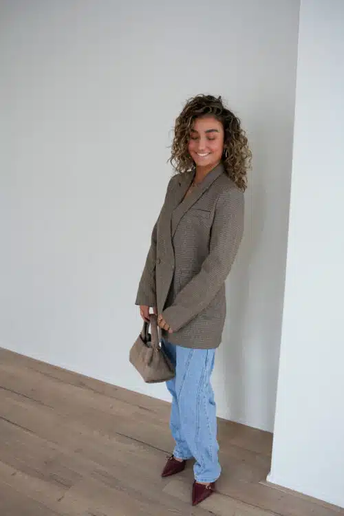 • model draagt normaal S, maar draagt hier een M voor een oversized look