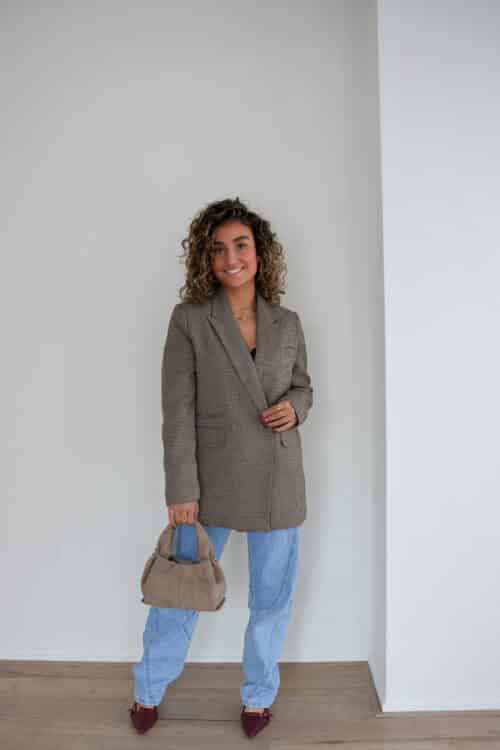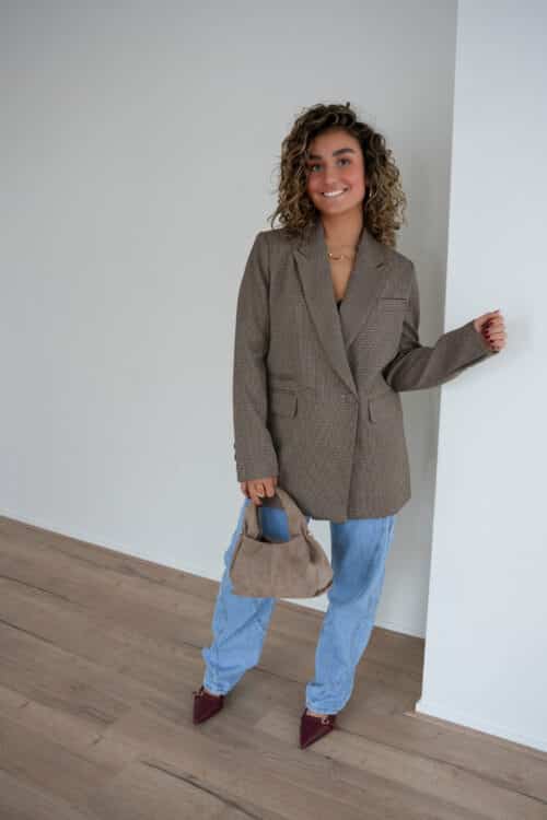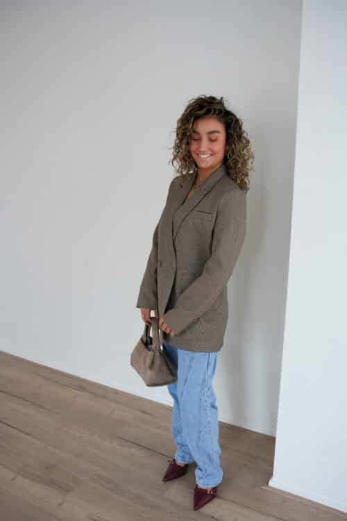 - model draagt normaal S, maar draagt hier een M voor een oversized look