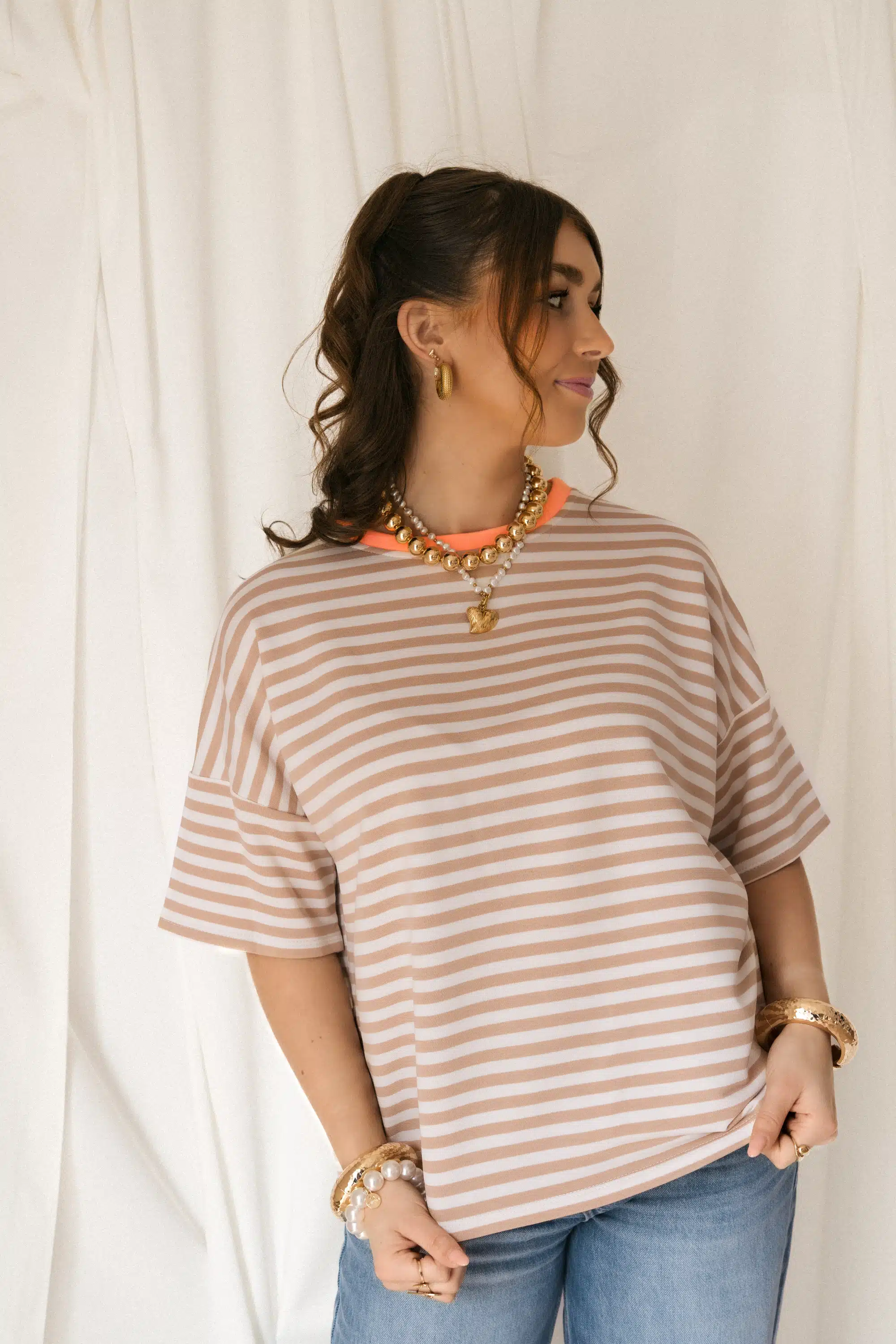 Nya Stripe Top Beige Orange