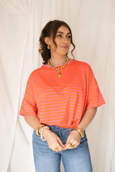 Nya Stripe Top Happy Orange Pink