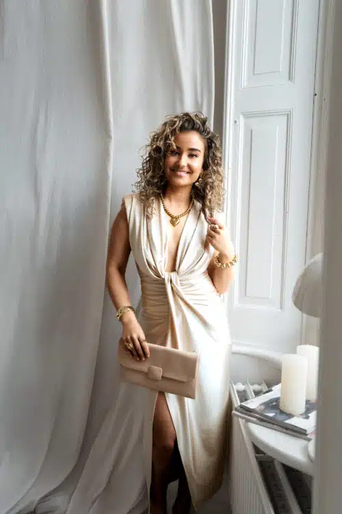 Alle modellen dragen geen bh onder deze jurk. Toch liever een bh? Dat kan! Maak de jurk dan wat hoger dicht met een drukknoopje of speldje ; dit zie je niet! Of wat dacht je van een mooie broche?