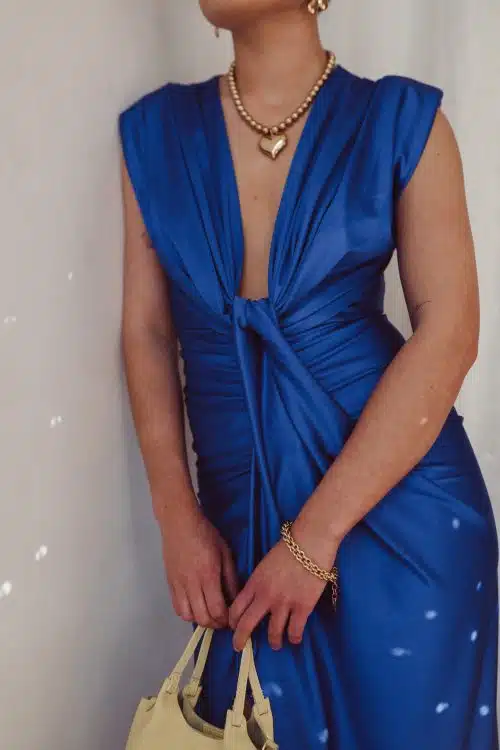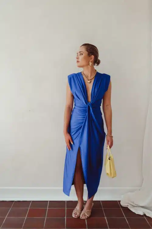 Alle modellen dragen geen bh onder deze jurk. Toch liever een bh? Dat kan! Maak de jurk dan wat hoger dicht met een drukknoopje of speldje ; dit zie je niet!