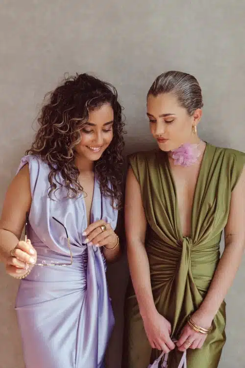 Alle modellen dragen geen bh onder deze jurk. Toch liever een bh? Dat kan! Maak de jurk dan wat hoger dicht met een drukknoopje of speldje ; dit zie je niet!