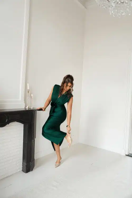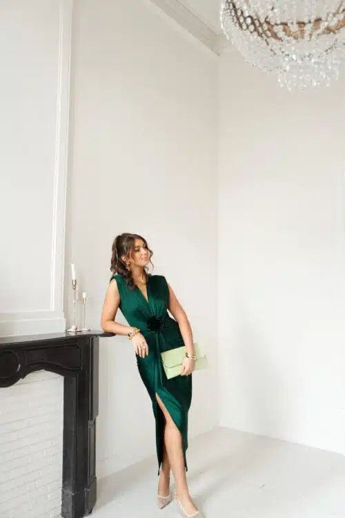 Alle modellen dragen geen bh onder deze jurk. Toch liever een bh? Dat kan! Maak de jurk dan wat hoger dicht met een drukknoopje of speldje ; dit zie je niet! Of wat dacht je van een mooie broche?