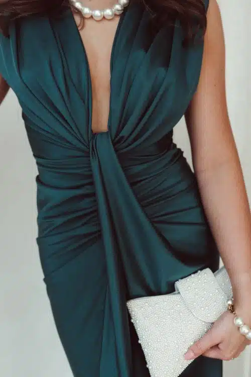 Alle modellen dragen geen bh onder deze jurk. Toch liever een bh? Dat kan! Maak de jurk dan wat hoger dicht met een drukknoopje of speldje ; dit zie je niet!