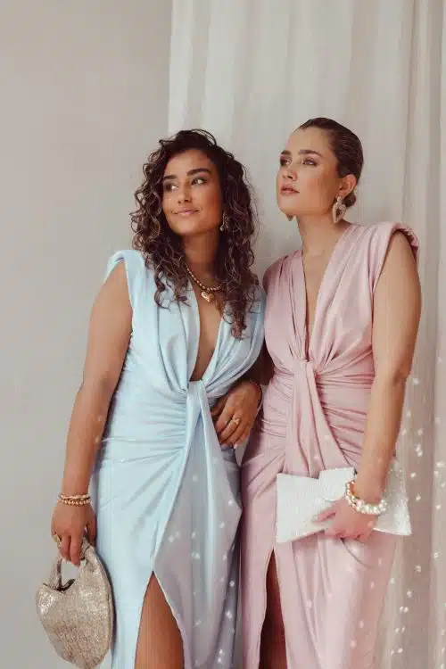 Alle modellen dragen geen bh onder deze jurk. Toch liever een bh? Dat kan! Maak de jurk dan wat hoger dicht met een drukknoopje of speldje ; dit zie je niet!