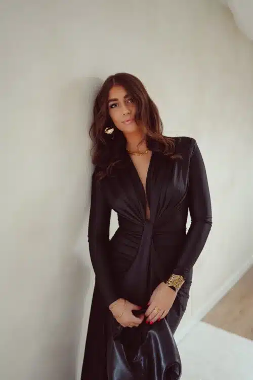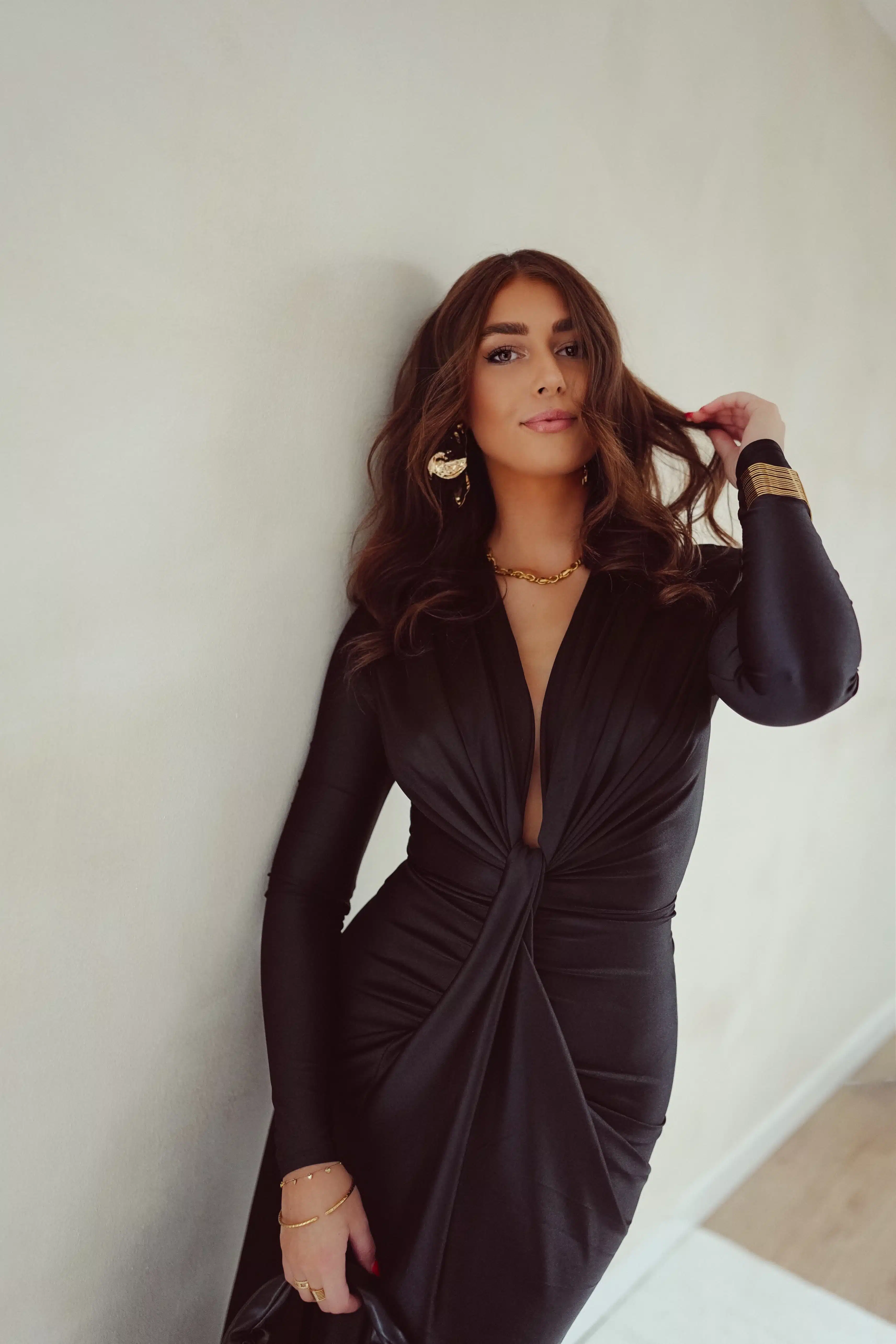 Alle modellen dragen geen bh onder deze jurk. Toch liever een bh? Dat kan! Maak de jurk dan wat hoger dicht met een drukknoopje of speldje ; dit zie je niet!