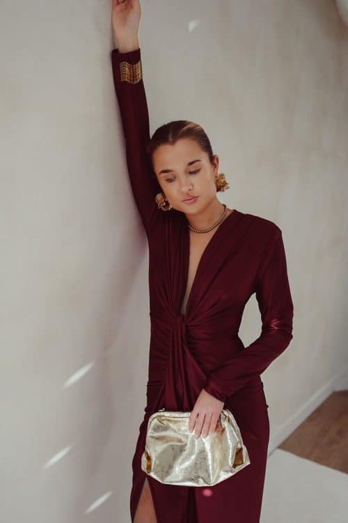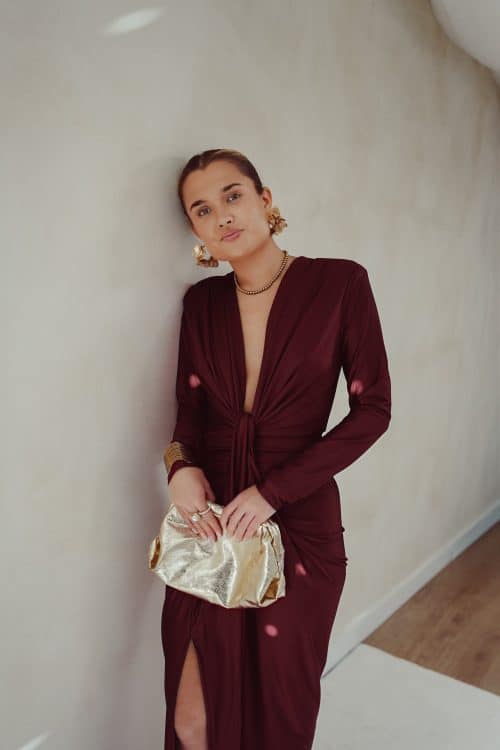 Alle modellen dragen geen bh onder deze jurk. Toch liever een bh? Dat kan! Maak de jurk dan wat hoger dicht met een drukknoopje of speldje ; dit zie je niet!