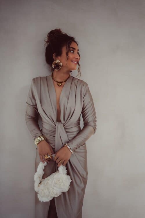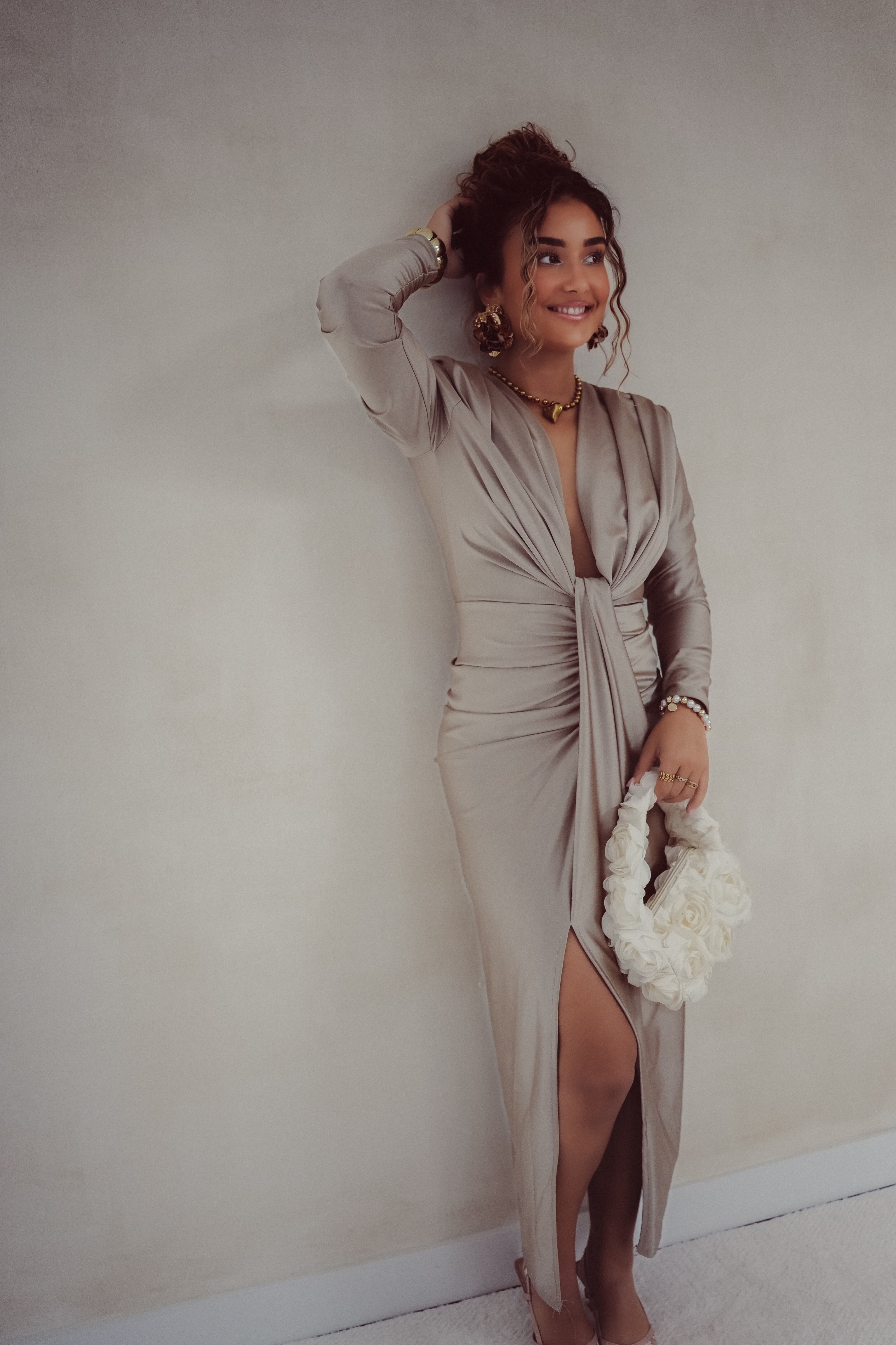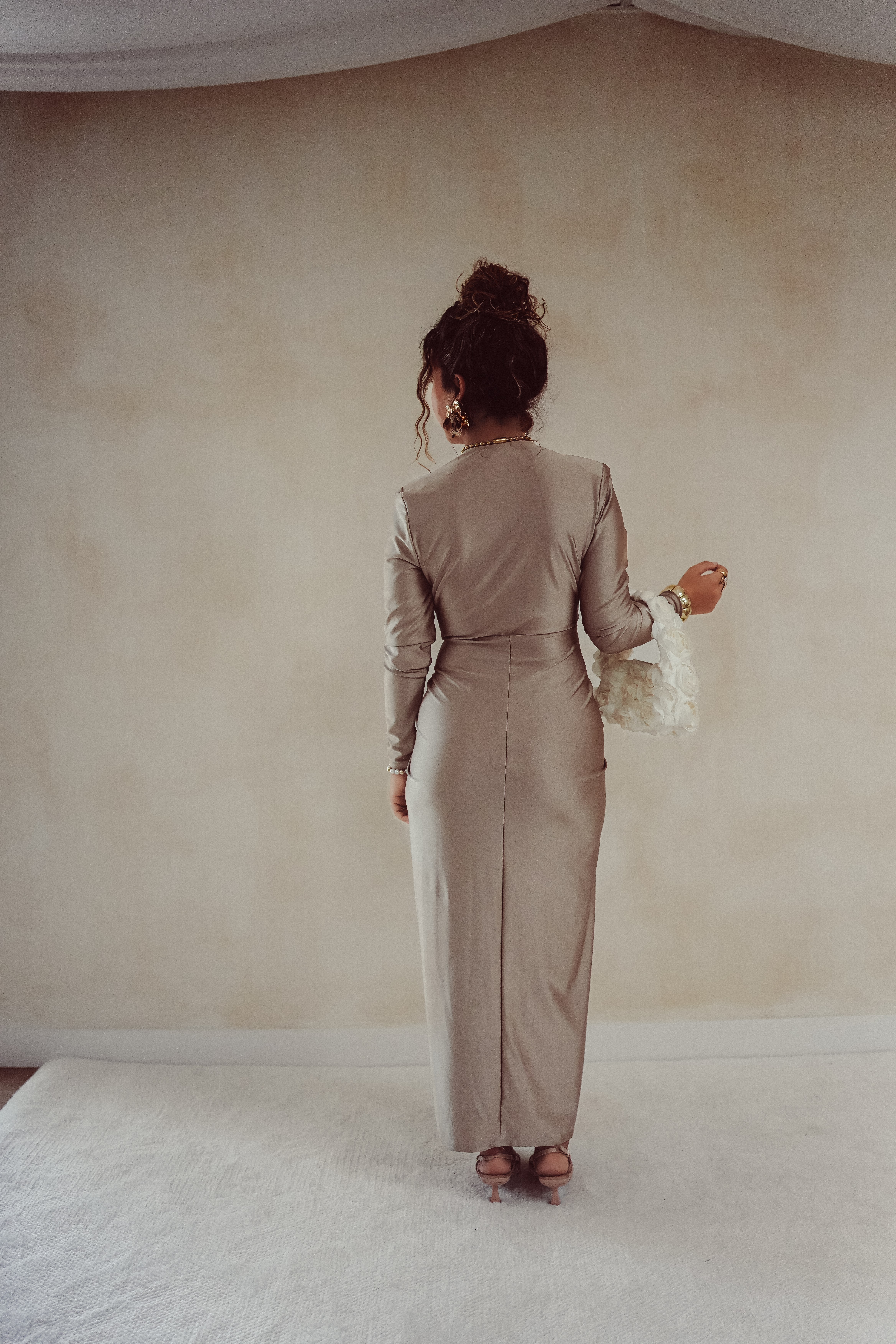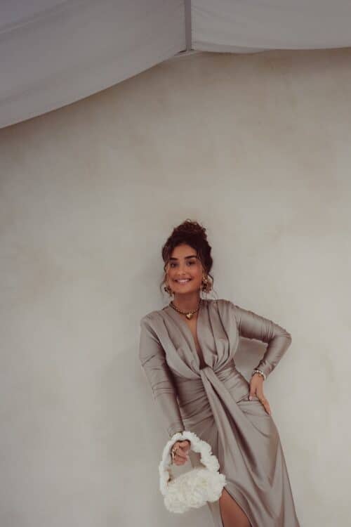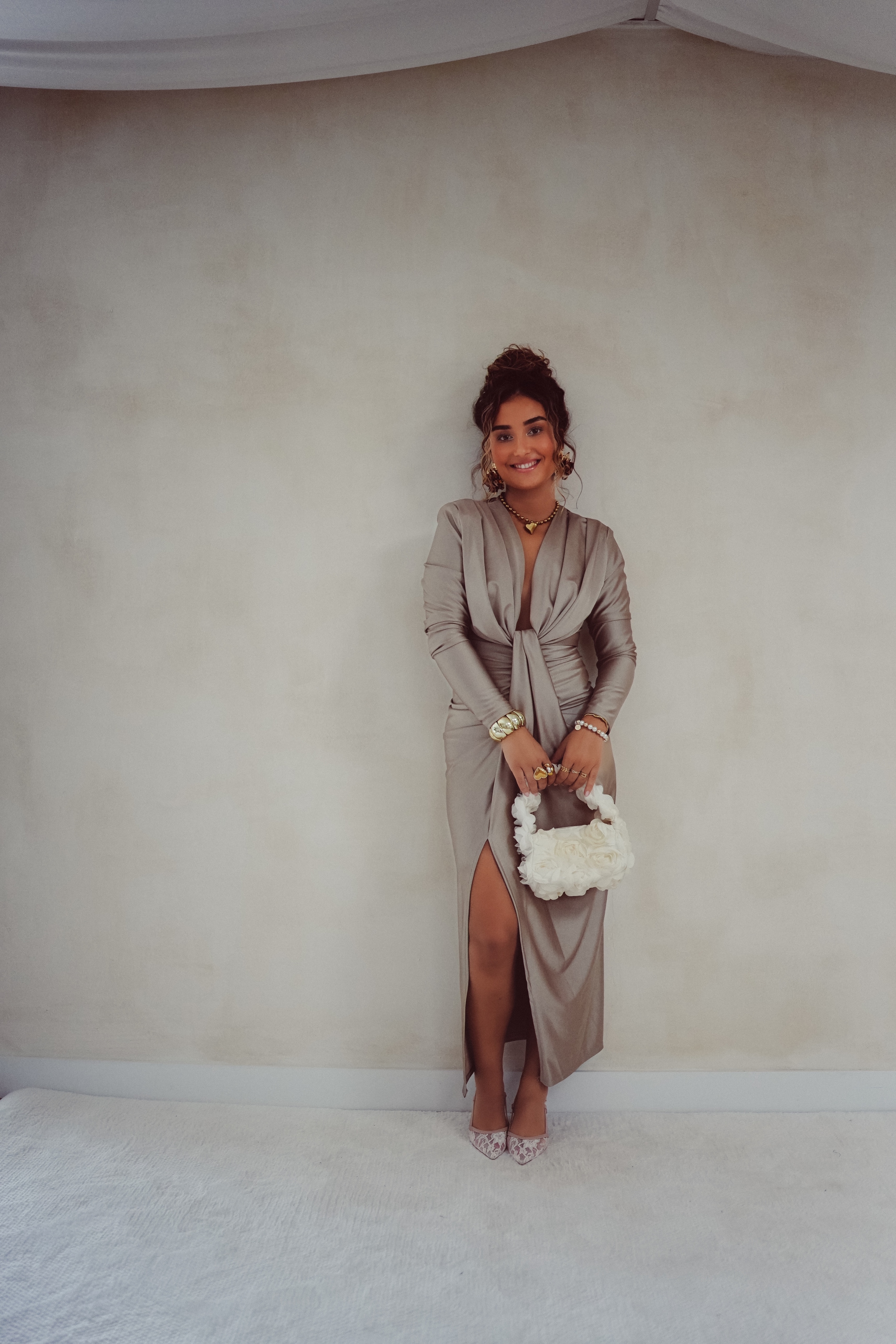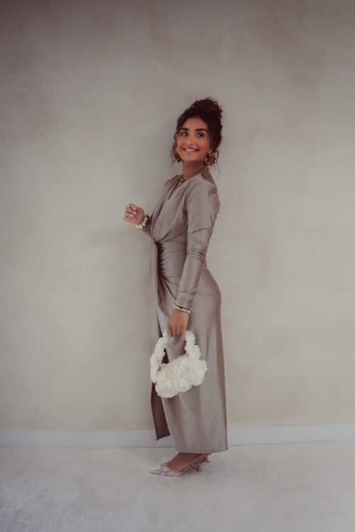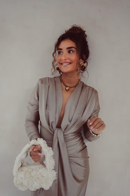 Alle modellen dragen geen bh onder deze jurk. Toch liever een bh? Dat kan! Maak de jurk dan wat hoger dicht met een drukknoopje of speldje ; dit zie je niet!