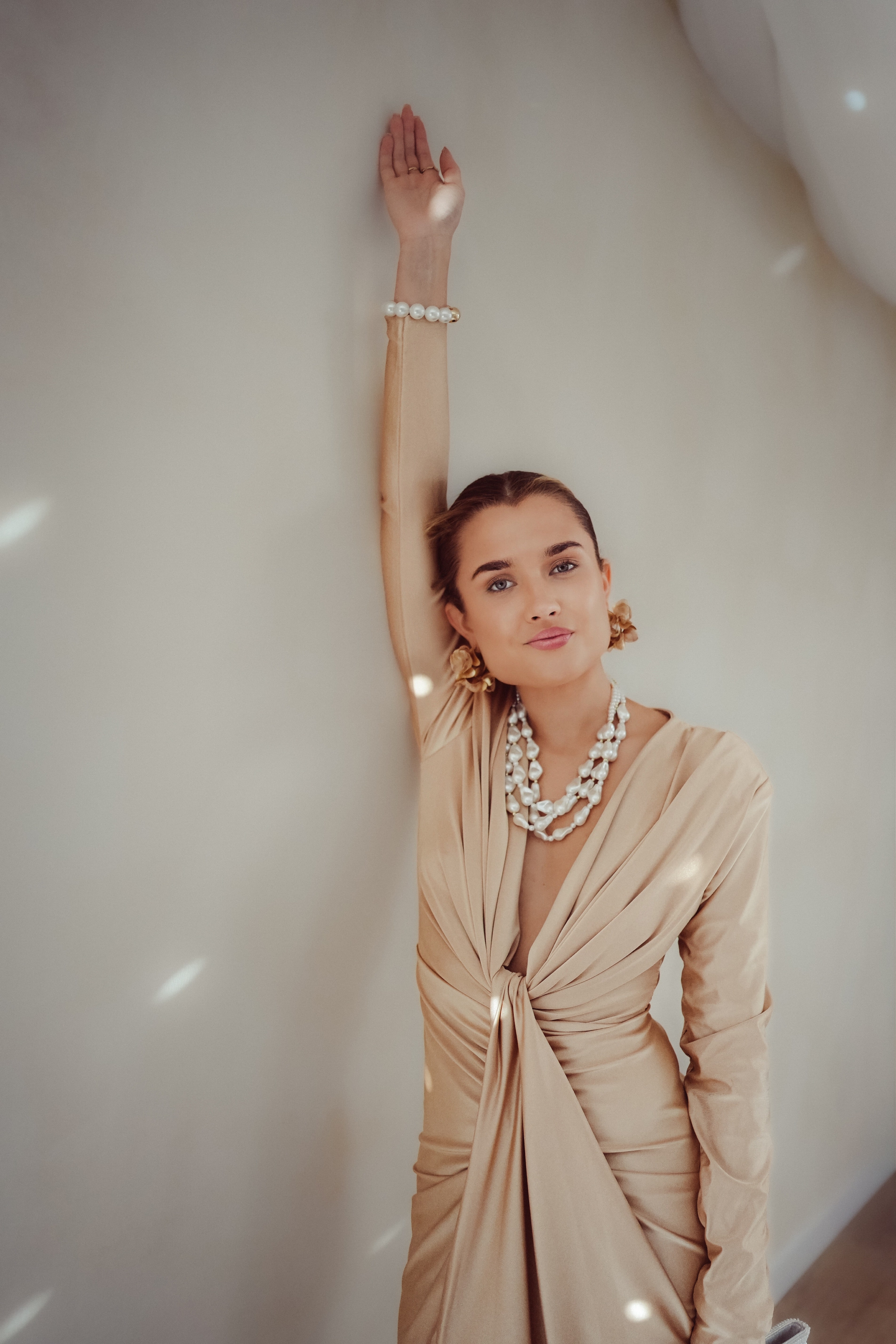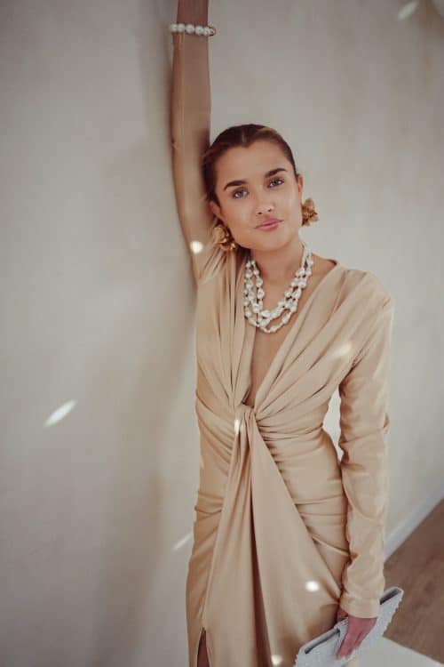 Alle modellen dragen geen bh onder deze jurk. Toch liever een bh? Dat kan! Maak de jurk dan wat hoger dicht met een drukknoopje of speldje ; dit zie je niet!