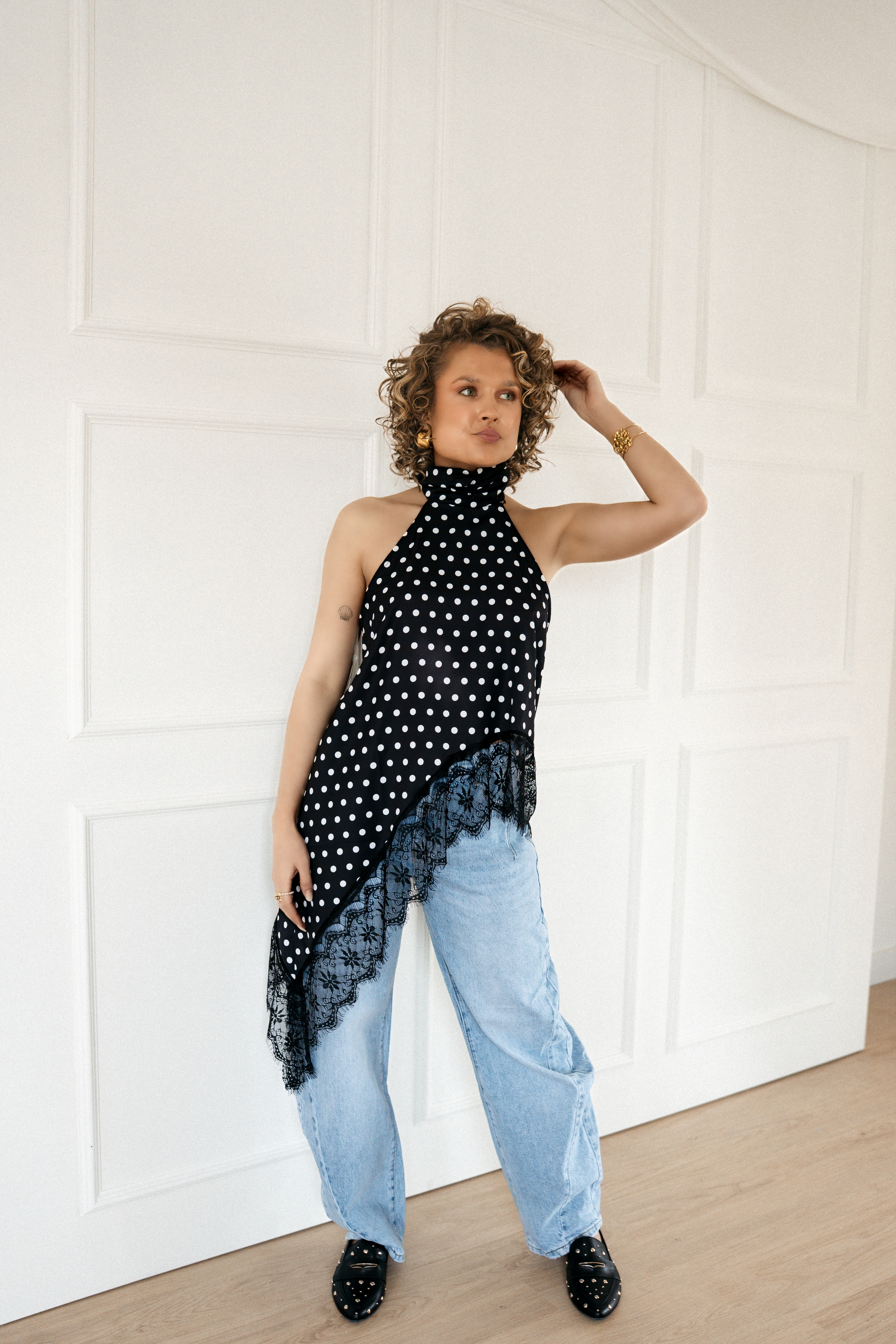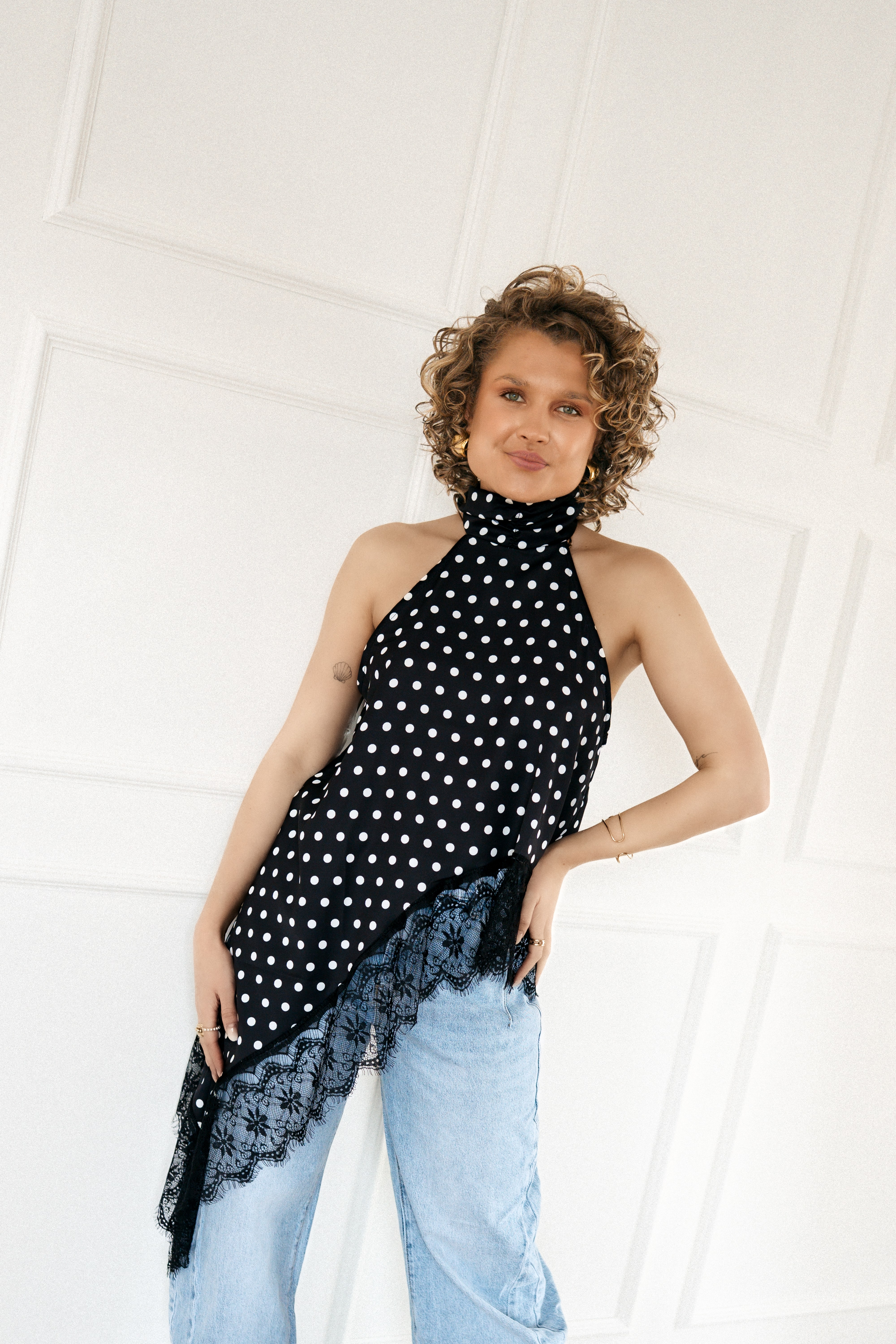 Polka Dot Lace Top Black~