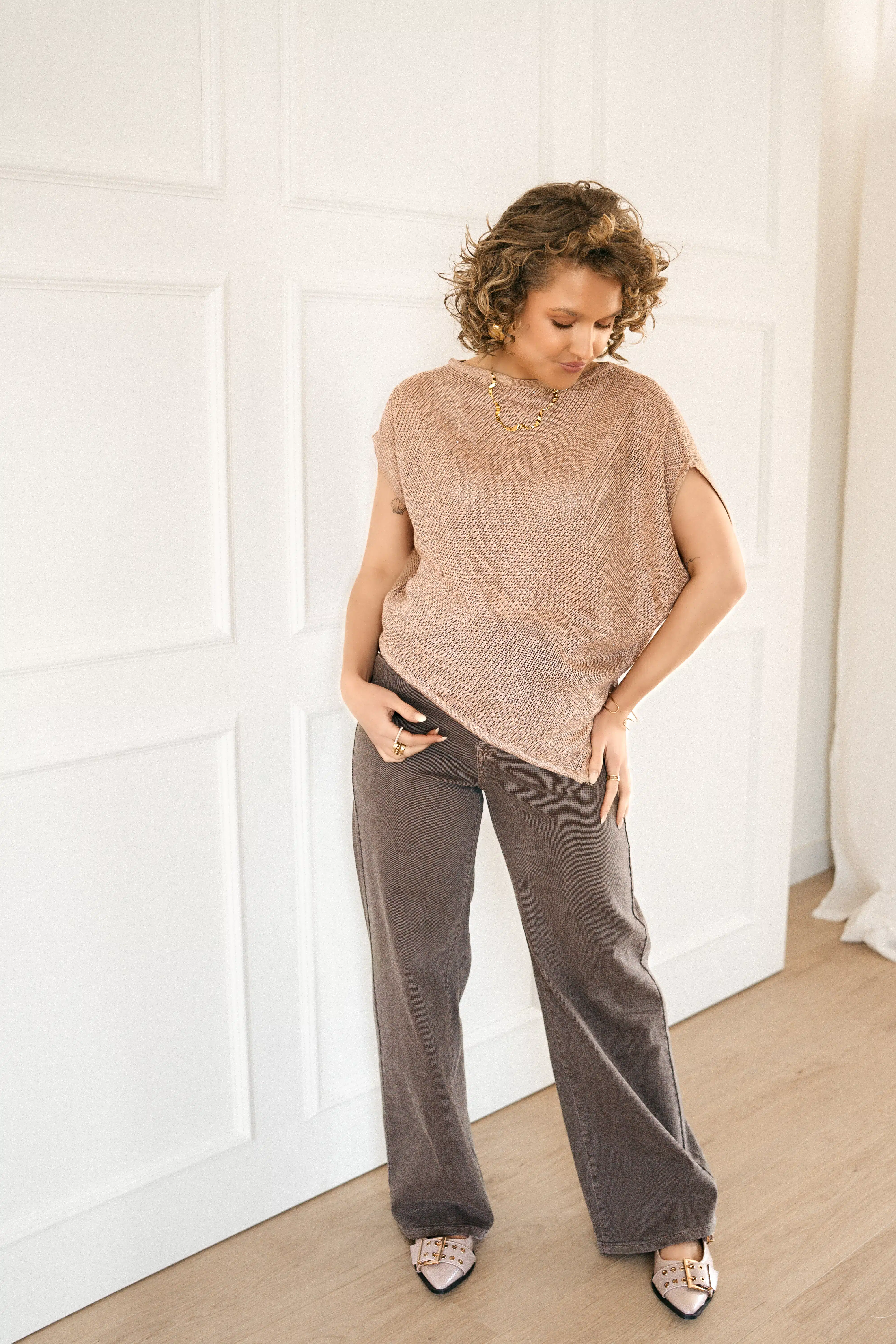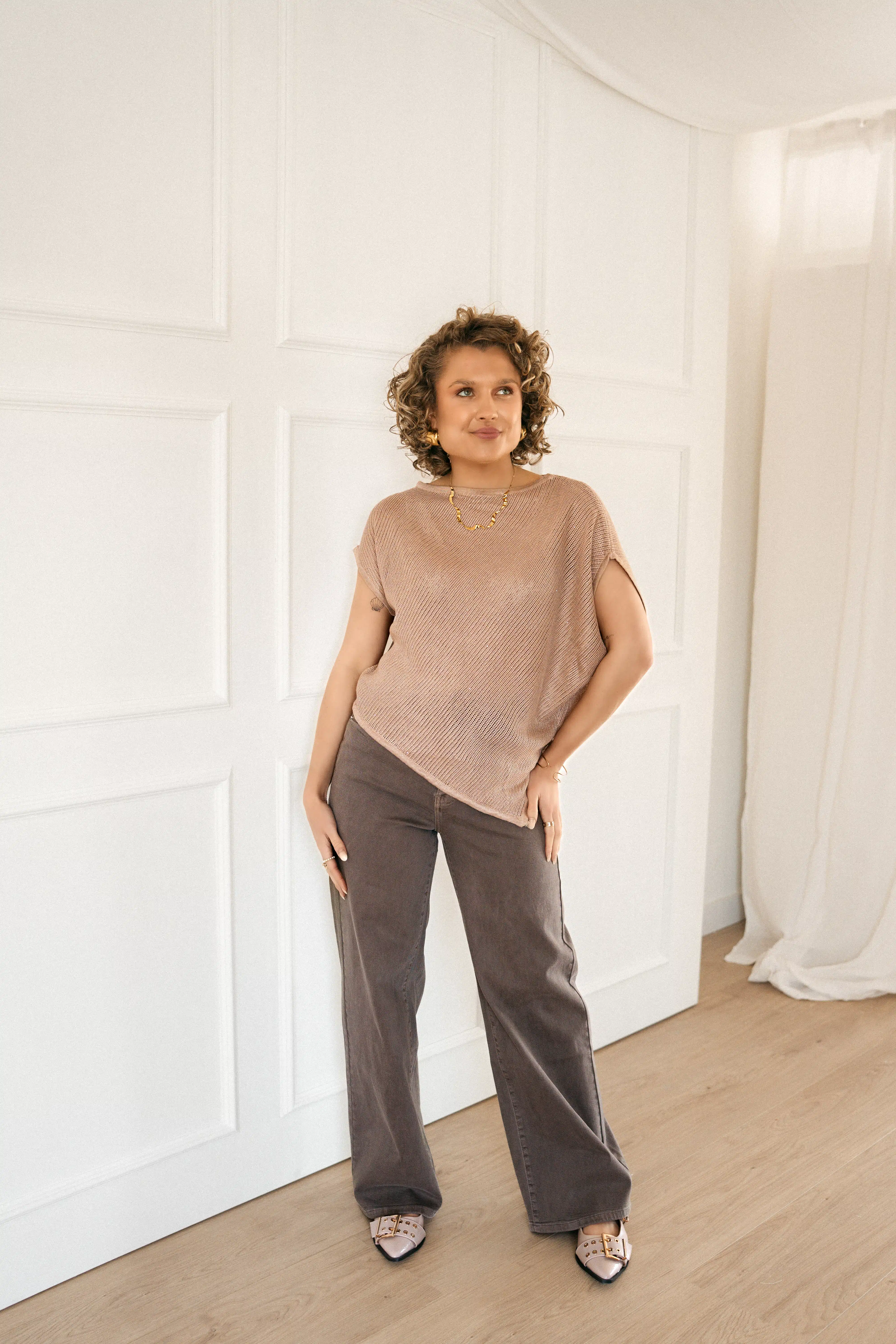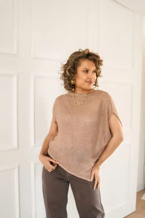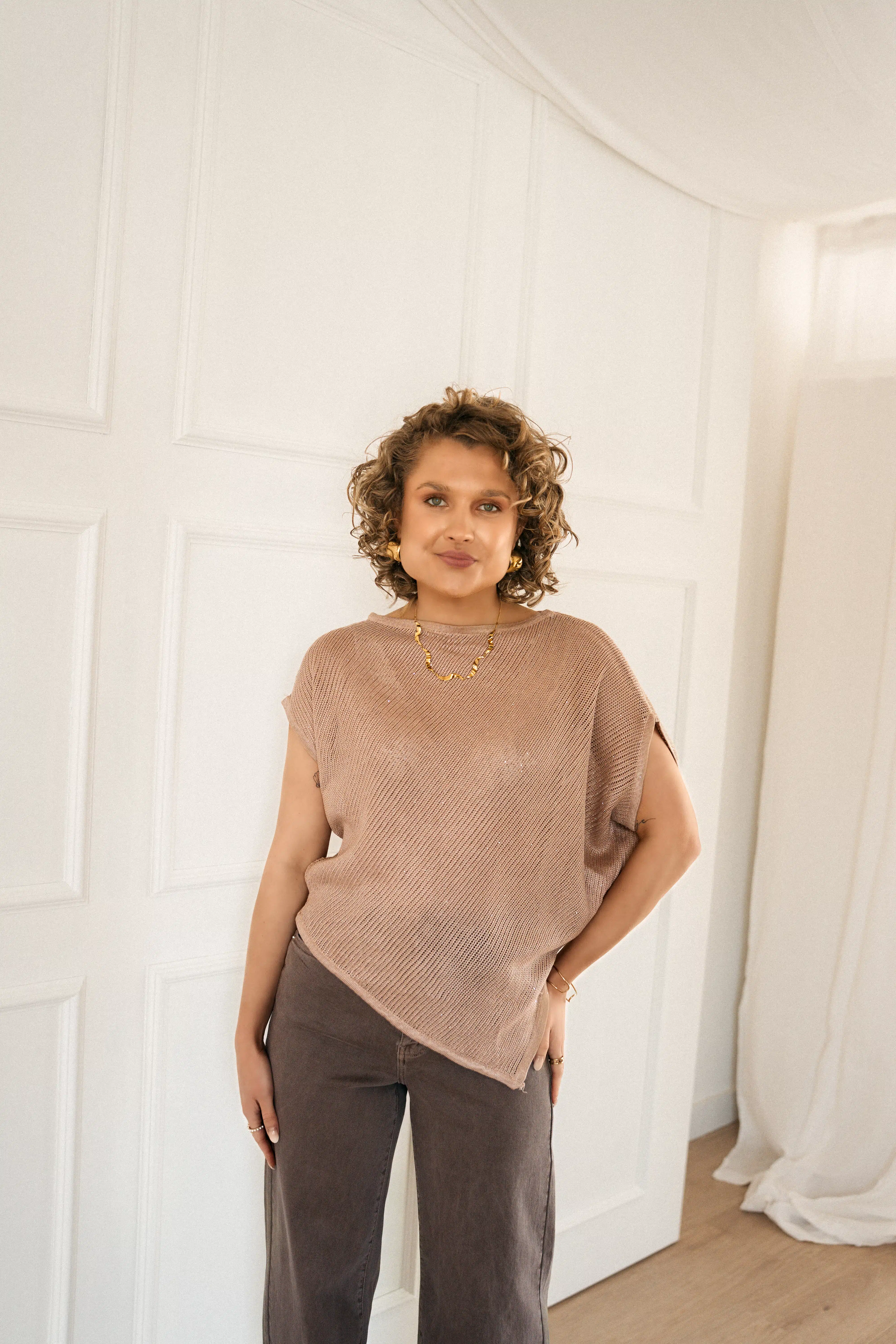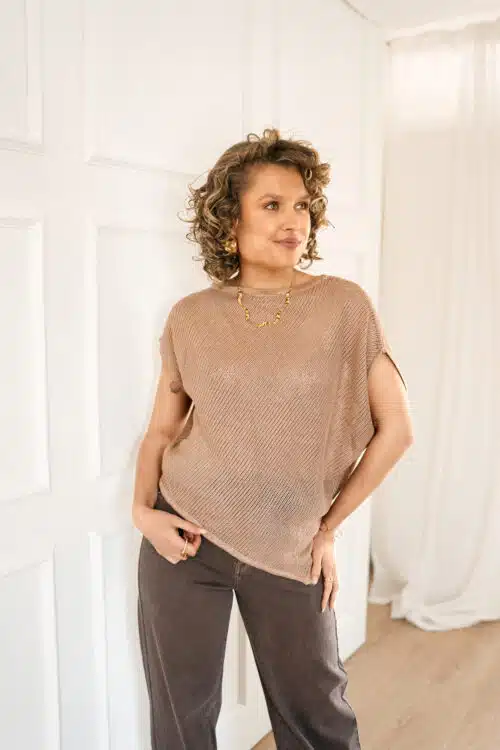 Romee Asymmetrical Sparkle Top Taupe *