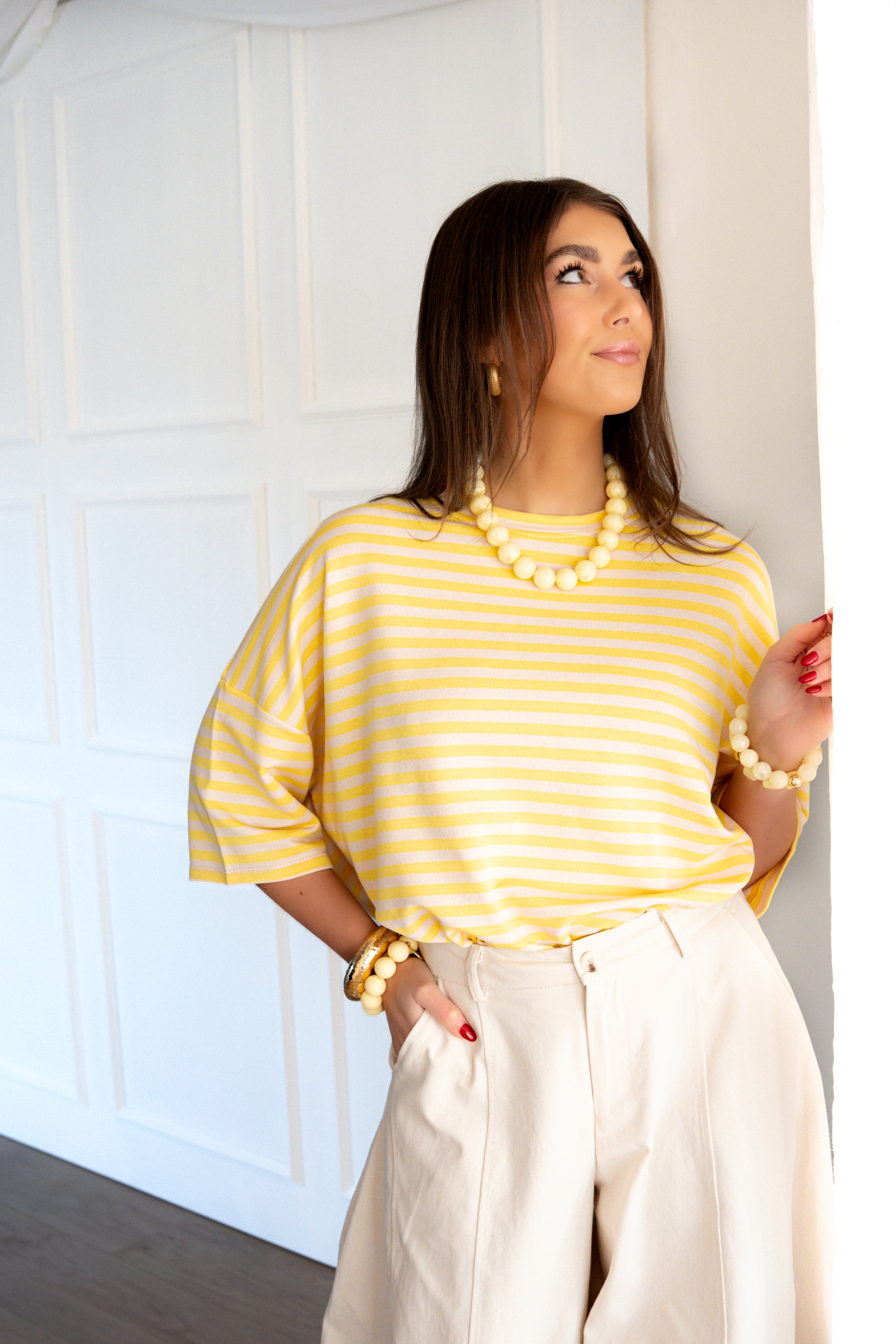 Syna Stripe Shirt Yellow Beige